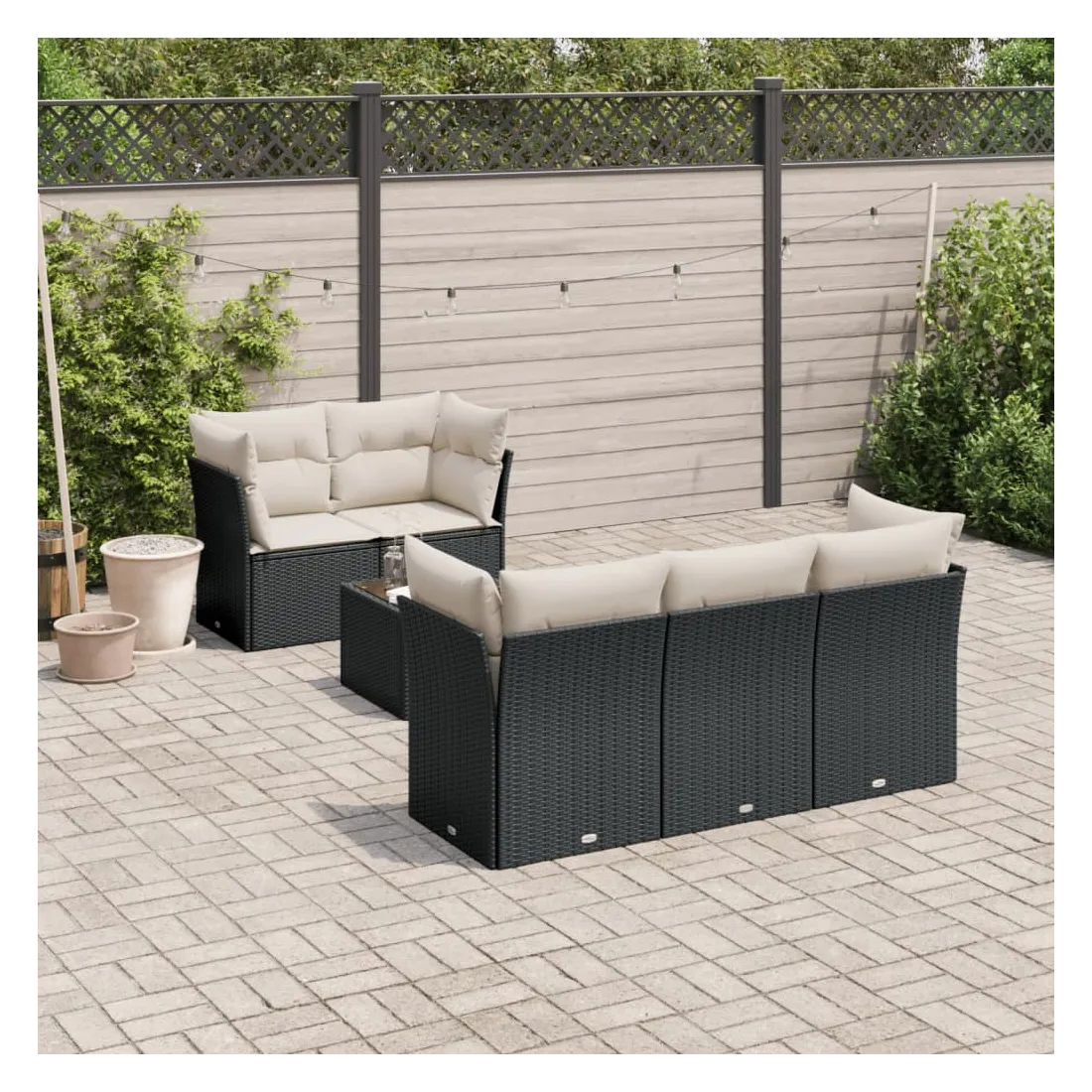 Cet ensemble de canapés de jardin est le complément parfait de votre arrière-cour, terrasse ou patio, offrant un espace confortable et accueillant pour discuter avec la famille et les amis ou simplement se détendre et profiter de l'extérieur. Matériau durable : la résine tressée, également connue sous le nom de poly rotin, est un matériau synthétique solide et nécessitant peu d'entretien qui ressemble au rotin naturel. Il est léger, facile à nettoyer et couramment utilisé pour les meubles d'extérieur en raison de sa durabilité et de ses propriétés de résistance aux intempéries.Fonction de rangement avec sac résistant à l'eau : chaque siège de jardin dispose d'un espace de rangement sous l'assise, complété par un sac résistant à l'eau pour ranger les coussins, les jouets et d'autres objets. Les sacs intérieurs sont dotés d'un couvercle et peuvent être solidement fixés aux sièges à l'aide de bandes auto-agrippantes pour plus de stabilité.Dessus en verre : le dessus de la table d'extérieur est fabriqué en verre trempé solide et durable, ce qui le rend facile à nettoyer avec un chiffon humide et ajoute une touche d'élégance à votre espace extérieur.Housse amovible et lavable : ces coussins de siège sont dotés de housses amovibles pour un lavage et un entretien faciles.Conception modulaire : cet ensemble de meubles d'extérieur a une conception modulaire, ce qui le rend complètement flexible et facile à déplacer, afin que vous puissiez créer un agencement de meubles d'extérieur personnalisé. Bon à savoir :Pour que vos meubles d'extérieur restent beaux, nous vous recommandons de les protéger avec une housse imperméable.