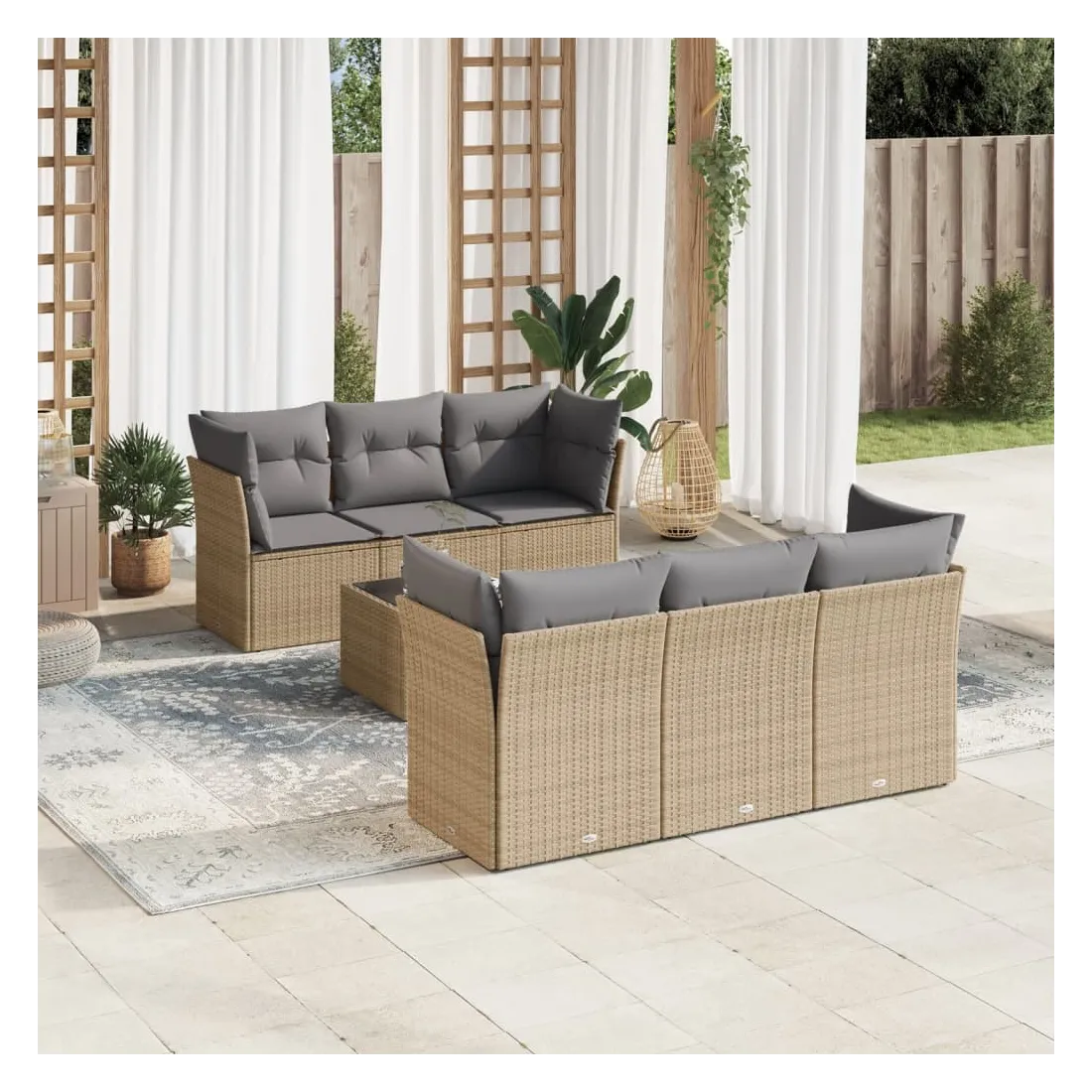 Cet ensemble de canapés de jardin est le complément parfait de votre arrière-cour, terrasse ou patio, offrant un espace confortable et accueillant pour discuter avec la famille et les amis ou simplement se détendre et profiter de l'extérieur. Matériau durable : la résine tressée, également connue sous le nom de poly rotin, est un matériau synthétique solide et nécessitant peu d'entretien qui ressemble au rotin naturel. Il est léger, facile à nettoyer et couramment utilisé pour les meubles d'extérieur en raison de sa durabilité et de ses propriétés de résistance aux intempéries.Fonction de rangement avec sac résistant à l'eau : chaque siège de jardin dispose d'un espace de rangement sous l'assise, complété par un sac résistant à l'eau pour ranger les coussins, les jouets et d'autres objets. Les sacs intérieurs sont dotés d'un couvercle et peuvent être solidement fixés aux sièges à l'aide de bandes auto-agrippantes pour plus de stabilité.Dessus en verre : le dessus de la table d'extérieur est fabriqué en verre trempé solide et durable, ce qui le rend facile à nettoyer avec un chiffon humide et ajoute une touche d'élégance à votre espace extérieur.Housse amovible et lavable : ces coussins de siège sont dotés de housses amovibles pour un lavage et un entretien faciles.Conception modulaire : cet ensemble de meubles d'extérieur a une conception modulaire, ce qui le rend complètement flexible et facile à déplacer, afin que vous puissiez créer un agencement de meubles d'extérieur personnalisé. Bon à savoir :Pour que vos meubles d'extérieur restent beaux, nous vous recommandons de les protéger avec une housse imperméable.