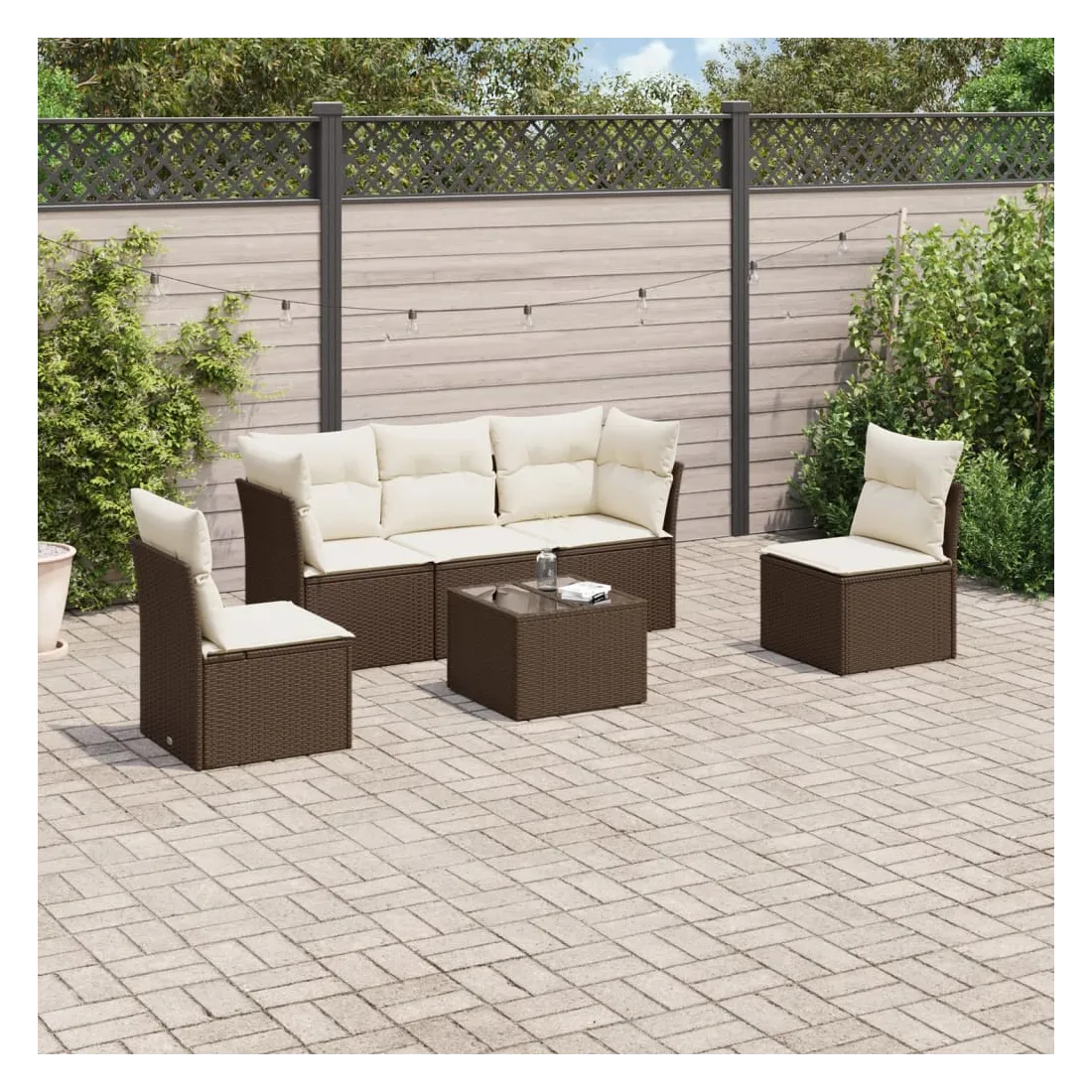 Cet ensemble de canapés de jardin est le complément parfait de votre arrière-cour, terrasse ou patio, offrant un espace confortable et accueillant pour discuter avec la famille et les amis ou simplement se détendre et profiter de l'extérieur. Matériau durable : la résine tressée, également connue sous le nom de poly rotin, est un matériau synthétique solide et nécessitant peu d'entretien qui ressemble au rotin naturel. Il est léger, facile à nettoyer et couramment utilisé pour les meubles d'extérieur en raison de sa durabilité et de ses propriétés de résistance aux intempéries.Fonction de rangement avec sac résistant à l'eau : chaque siège de jardin dispose d'un espace de rangement sous l'assise, complété par un sac résistant à l'eau pour ranger les coussins, les jouets et d'autres objets. Les sacs intérieurs sont dotés d'un couvercle et peuvent être solidement fixés aux sièges à l'aide de bandes auto-agrippantes pour plus de stabilité.Dessus en verre : le dessus de la table d'extérieur est fabriqué en verre trempé solide et durable, ce qui le rend facile à nettoyer avec un chiffon humide et ajoute une touche d'élégance à votre espace extérieur.Housse amovible et lavable : ces coussins de siège sont dotés de housses amovibles pour un lavage et un entretien faciles.Conception modulaire : cet ensemble de meubles d'extérieur a une conception modulaire, ce qui le rend complètement flexible et facile à déplacer, afin que vous puissiez créer un agencement de meubles d'extérieur personnalisé. Bon à savoir :Pour que vos meubles d'extérieur restent beaux, nous vous recommandons de les protéger avec une housse imperméable.