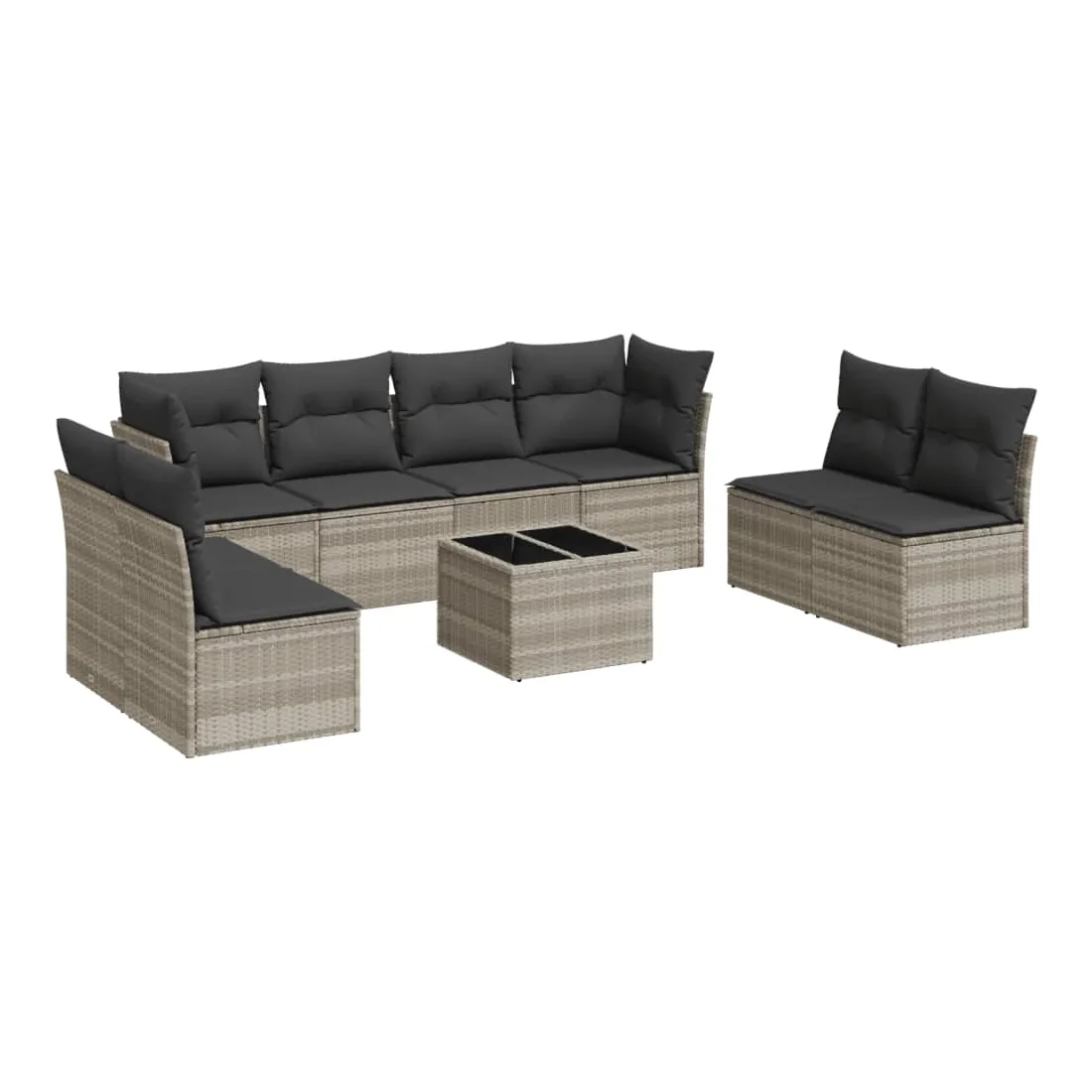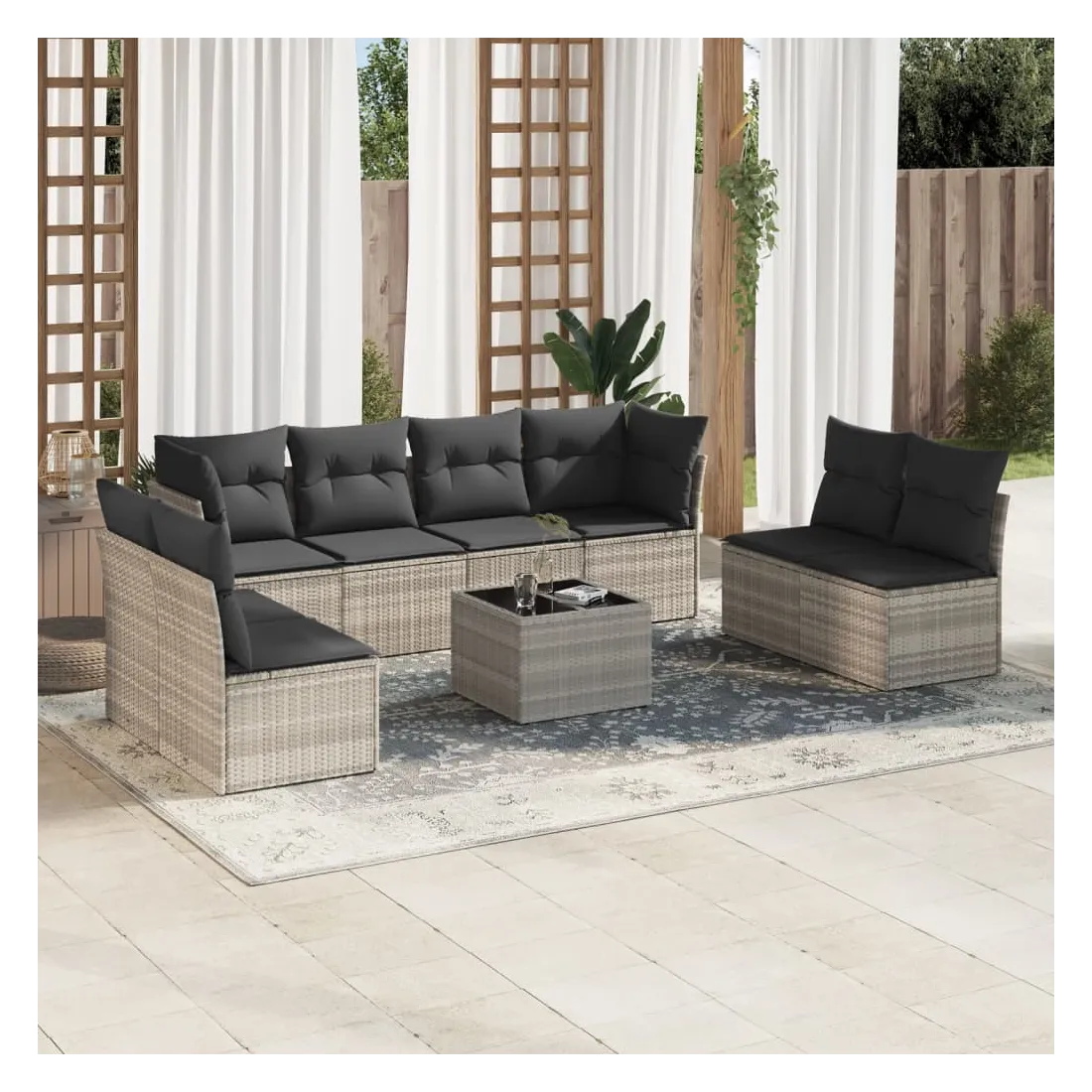 Cet ensemble de canapés de jardin est le complément parfait de votre arrière-cour, terrasse ou patio, offrant un espace confortable et accueillant pour discuter avec la famille et les amis ou simplement se détendre et profiter de l'extérieur. Matériau durable : la résine tressée, également connue sous le nom de poly rotin, est un matériau synthétique solide et nécessitant peu d'entretien qui ressemble au rotin naturel. Il est léger, facile à nettoyer et couramment utilisé pour les meubles d'extérieur en raison de sa durabilité et de ses propriétés de résistance aux intempéries.Fonction de rangement avec sac résistant à l'eau : chaque siège de jardin dispose d'un espace de rangement sous l'assise, complété par un sac résistant à l'eau pour ranger les coussins, les jouets et d'autres objets. Les sacs intérieurs sont dotés d'un couvercle et peuvent être solidement fixés aux sièges à l'aide de bandes auto-agrippantes pour plus de stabilité.Dessus en verre : le dessus de la table d'extérieur est fabriqué en verre trempé solide et durable, ce qui le rend facile à nettoyer avec un chiffon humide et ajoute une touche d'élégance à votre espace extérieur.Housse amovible et lavable : ces coussins de siège sont dotés de housses amovibles pour un lavage et un entretien faciles.Conception modulaire : cet ensemble de meubles d'extérieur a une conception modulaire, ce qui le rend complètement flexible et facile à déplacer, afin que vous puissiez créer un agencement de meubles d'extérieur personnalisé. Bon à savoir :Pour que vos meubles d'extérieur restent beaux, nous vous recommandons de les protéger avec une housse imperméable.