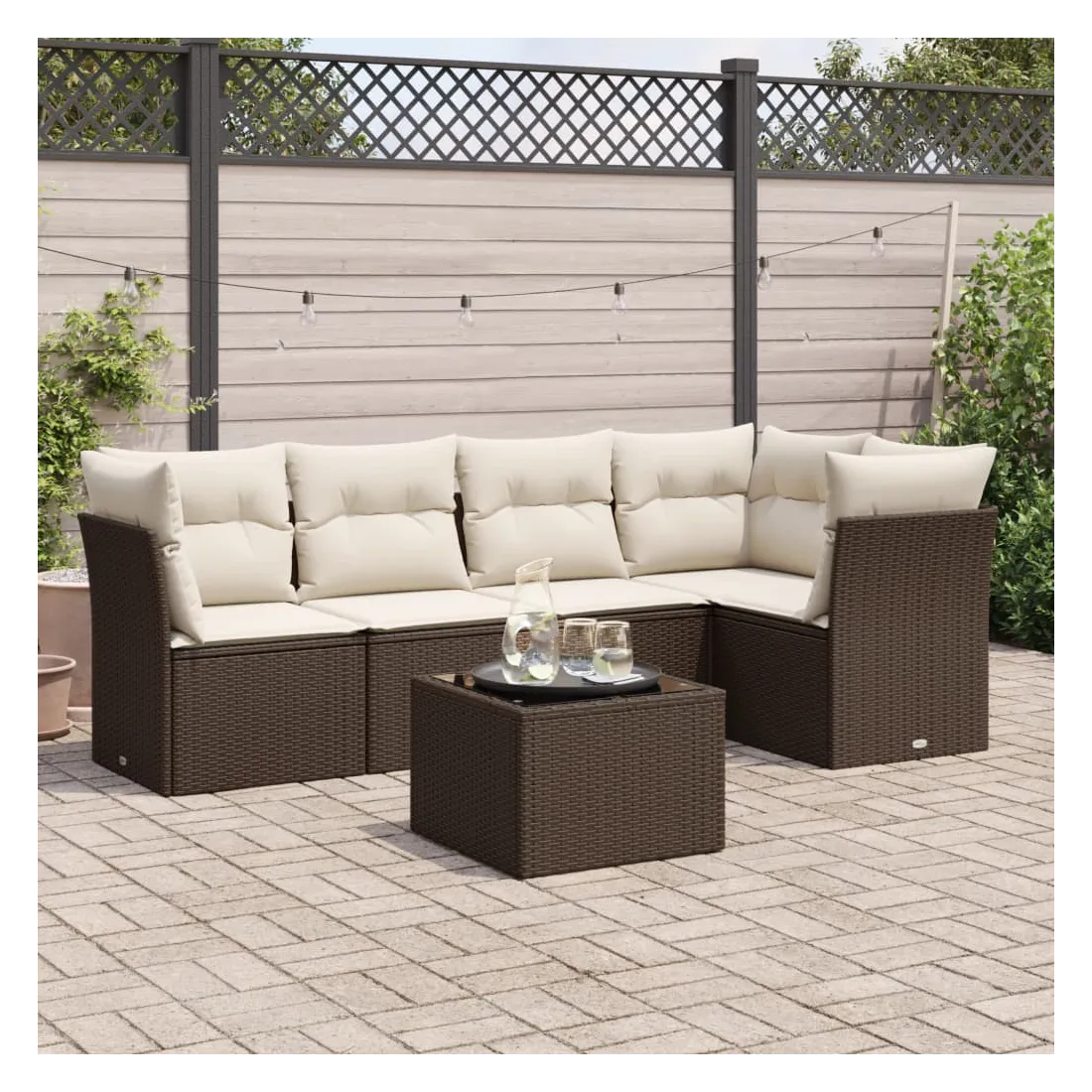 Cet ensemble de canapés de jardin est le complément parfait de votre arrière-cour, terrasse ou patio, offrant un espace confortable et accueillant pour discuter avec la famille et les amis ou simplement se détendre et profiter de l'extérieur. Matériau durable : la résine tressée, également connue sous le nom de poly rotin, est un matériau synthétique solide et nécessitant peu d'entretien qui ressemble au rotin naturel. Il est léger, facile à nettoyer et couramment utilisé pour les meubles d'extérieur en raison de sa durabilité et de ses propriétés de résistance aux intempéries.Fonction de rangement avec sac résistant à l'eau : chaque siège de jardin dispose d'un espace de rangement sous l'assise, complété par un sac résistant à l'eau pour ranger les coussins, les jouets et d'autres objets. Les sacs intérieurs sont dotés d'un couvercle et peuvent être solidement fixés aux sièges à l'aide de bandes auto-agrippantes pour plus de stabilité.Dessus en verre : le dessus de la table d'extérieur est fabriqué en verre trempé solide et durable, ce qui le rend facile à nettoyer avec un chiffon humide et ajoute une touche d'élégance à votre espace extérieur.Housse amovible et lavable : ces coussins de siège sont dotés de housses amovibles pour un lavage et un entretien faciles.Conception modulaire : cet ensemble de meubles d'extérieur a une conception modulaire, ce qui le rend complètement flexible et facile à déplacer, afin que vous puissiez créer un agencement de meubles d'extérieur personnalisé. Bon à savoir :Pour que vos meubles d'extérieur restent beaux, nous vous recommandons de les protéger avec une housse imperméable.