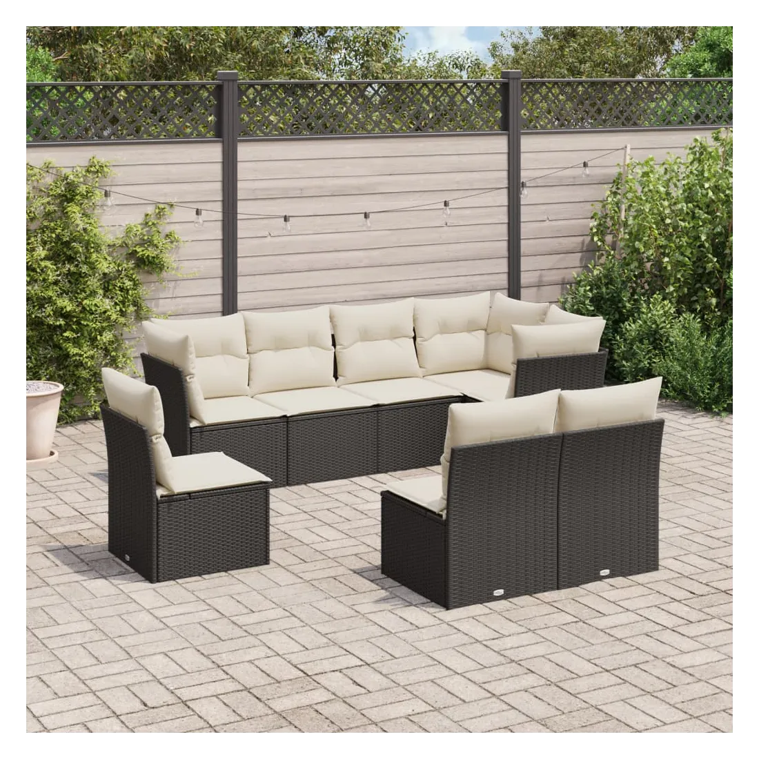 Cet ensemble de canapés de jardin est le complément parfait de votre arrière-cour, terrasse ou patio, offrant un espace confortable et accueillant pour discuter avec la famille et les amis ou simplement se détendre et profiter de l'extérieur. Matériau durable : la résine tressée, également connue sous le nom de poly rotin, est un matériau synthétique solide et nécessitant peu d'entretien qui ressemble au rotin naturel. Il est léger, facile à nettoyer et couramment utilisé pour les meubles d'extérieur en raison de sa durabilité et de ses propriétés de résistance aux intempéries.Fonction de rangement avec sac résistant à l'eau : chaque siège de jardin dispose d'un espace de rangement sous l'assise, complété par un sac résistant à l'eau pour ranger les coussins, les jouets et d'autres objets. Les sacs intérieurs sont dotés d'un couvercle et peuvent être solidement fixés aux sièges à l'aide de bandes auto-agrippantes pour plus de stabilité.Housse amovible et lavable : ces coussins de siège sont dotés de housses amovibles pour un lavage et un entretien faciles.Conception modulaire : cet ensemble de meubles d'extérieur a une conception modulaire, ce qui le rend complètement flexible et facile à déplacer, afin que vous puissiez créer un agencement de meubles d'extérieur personnalisé. Bon à savoir :Pour que vos meubles d'extérieur restent beaux, nous vous recommandons de les protéger avec une housse imperméable.