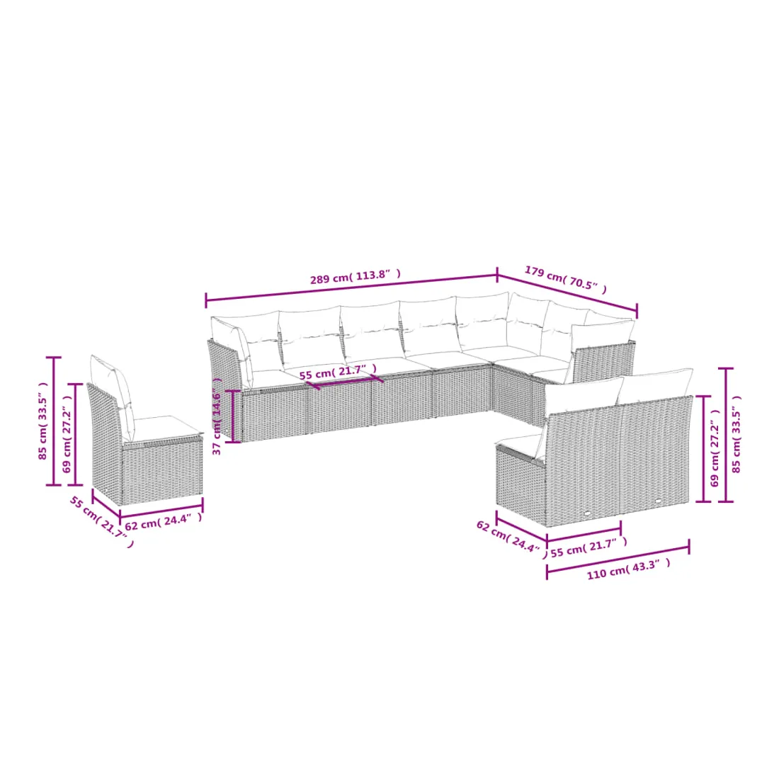 - Dimensions totales du canapé 7 places : 289 x 179 x 69 cm (l x P x H)