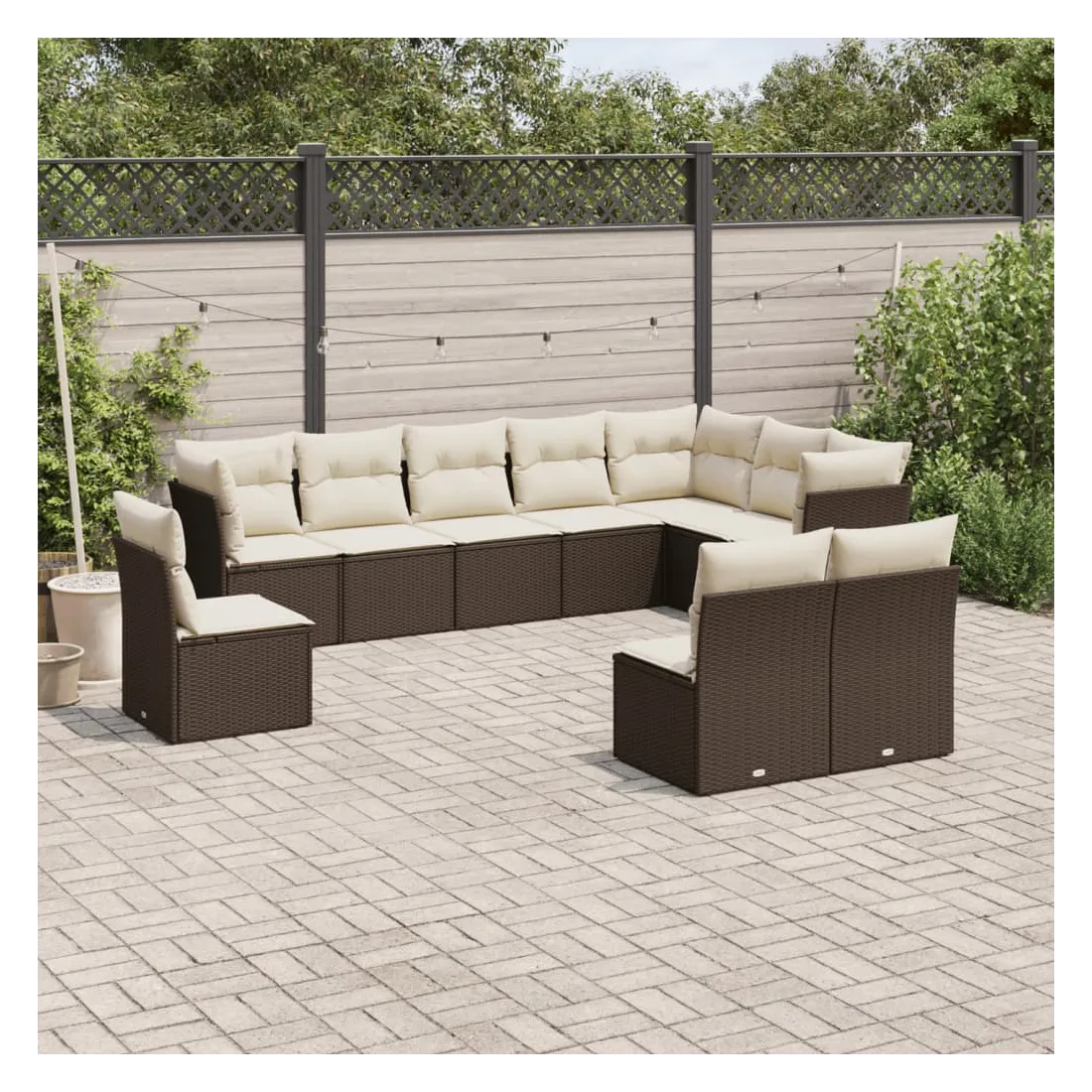 Cet ensemble de canapés de jardin est le complément parfait de votre arrière-cour, terrasse ou patio, offrant un espace confortable et accueillant pour discuter avec la famille et les amis ou simplement se détendre et profiter de l'extérieur. Matériau durable : la résine tressée, également connue sous le nom de poly rotin, est un matériau synthétique solide et nécessitant peu d'entretien qui ressemble au rotin naturel. Il est léger, facile à nettoyer et couramment utilisé pour les meubles d'extérieur en raison de sa durabilité et de ses propriétés de résistance aux intempéries.Fonction de rangement avec sac résistant à l'eau : chaque siège de jardin dispose d'un espace de rangement sous l'assise, complété par un sac résistant à l'eau pour ranger les coussins, les jouets et d'autres objets. Les sacs intérieurs sont dotés d'un couvercle et peuvent être solidement fixés aux sièges à l'aide de bandes auto-agrippantes pour plus de stabilité.Housse amovible et lavable : ces coussins de siège sont dotés de housses amovibles pour un lavage et un entretien faciles.Conception modulaire : cet ensemble de meubles d'extérieur a une conception modulaire, ce qui le rend complètement flexible et facile à déplacer, afin que vous puissiez créer un agencement de meubles d'extérieur personnalisé. Bon à savoir :Pour que vos meubles d'extérieur restent beaux, nous vous recommandons de les protéger avec une housse imperméable.