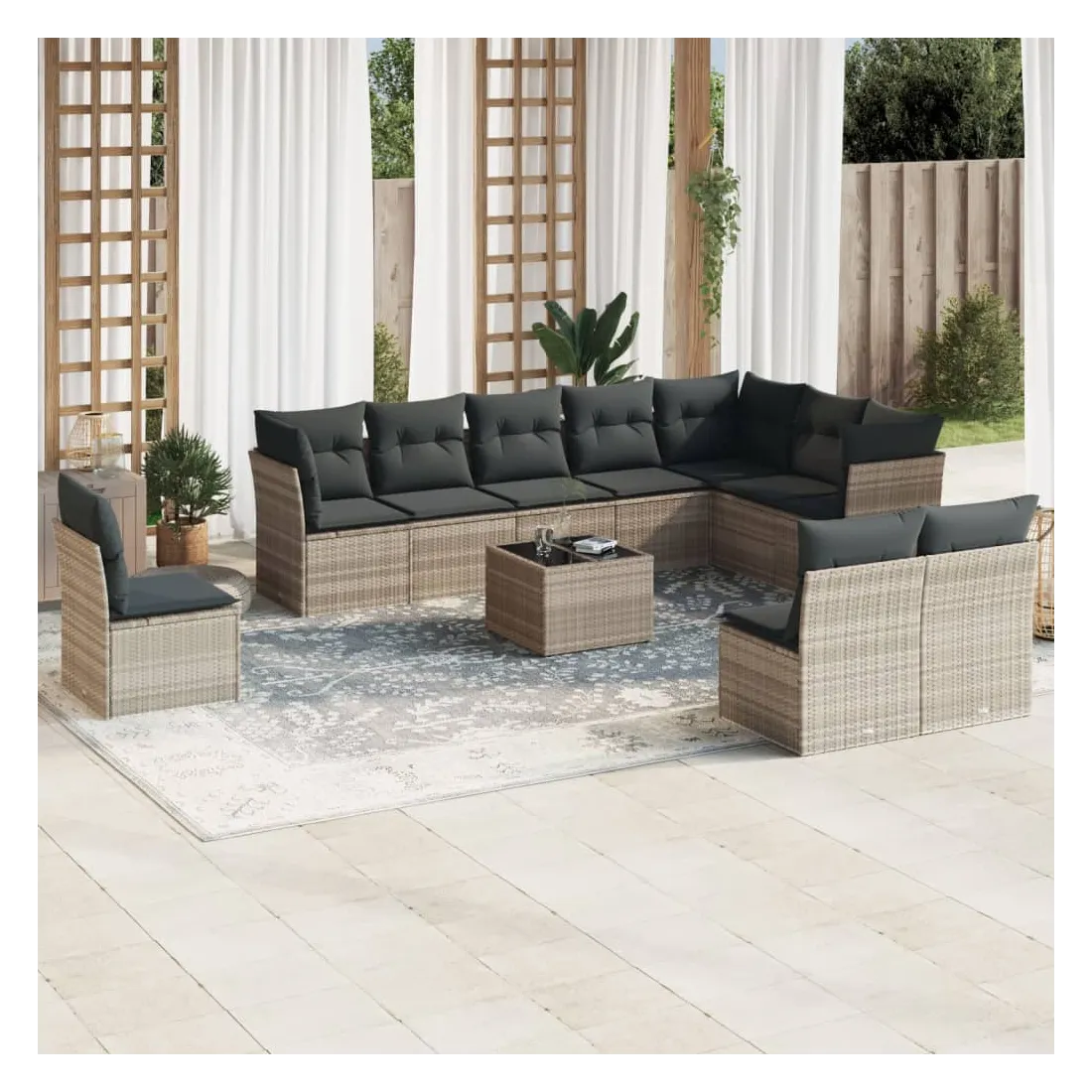 Cet ensemble de canapés de jardin est le complément parfait de votre arrière-cour, terrasse ou patio, offrant un espace confortable et accueillant pour discuter avec la famille et les amis ou simplement se détendre et profiter de l'extérieur. Matériau durable : la résine tressée, également connue sous le nom de poly rotin, est un matériau synthétique solide et nécessitant peu d'entretien qui ressemble au rotin naturel. Il est léger, facile à nettoyer et couramment utilisé pour les meubles d'extérieur en raison de sa durabilité et de ses propriétés de résistance aux intempéries.Fonction de rangement avec sac résistant à l'eau : chaque siège de jardin dispose d'un espace de rangement sous l'assise, complété par un sac résistant à l'eau pour ranger les coussins, les jouets et d'autres objets. Les sacs intérieurs sont dotés d'un couvercle et peuvent être solidement fixés aux sièges à l'aide de bandes auto-agrippantes pour plus de stabilité.Dessus en verre : le dessus de la table d'extérieur est fabriqué en verre trempé solide et durable, ce qui le rend facile à nettoyer avec un chiffon humide et ajoute une touche d'élégance à votre espace extérieur.Housse amovible et lavable : ces coussins de siège sont dotés de housses amovibles pour un lavage et un entretien faciles.Conception modulaire : cet ensemble de meubles d'extérieur a une conception modulaire, ce qui le rend complètement flexible et facile à déplacer, afin que vous puissiez créer un agencement de meubles d'extérieur personnalisé. Bon à savoir :Pour que vos meubles d'extérieur restent beaux, nous vous recommandons de les protéger avec une housse imperméable.