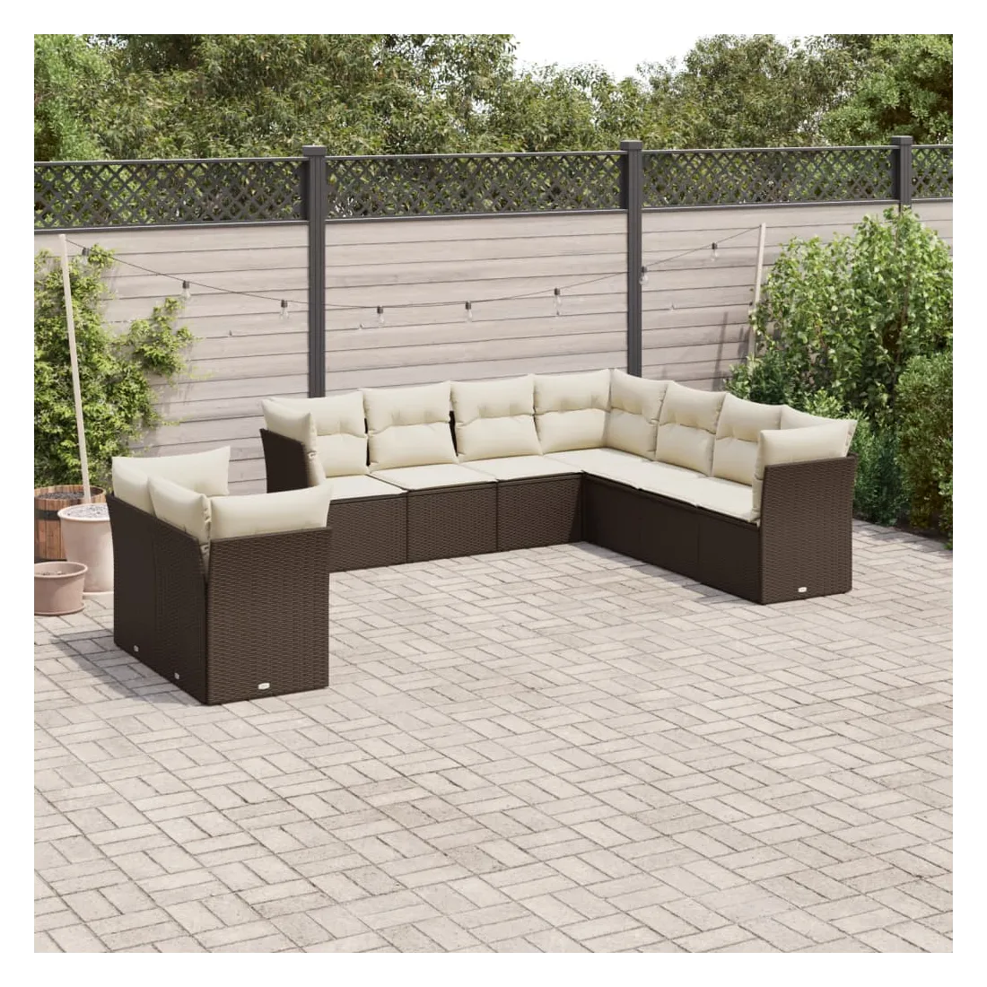 Cet ensemble de canapés de jardin est le complément parfait de votre arrière-cour, terrasse ou patio, offrant un espace confortable et accueillant pour discuter avec la famille et les amis ou simplement se détendre et profiter de l'extérieur. Matériau durable : la résine tressée, également connue sous le nom de poly rotin, est un matériau synthétique solide et nécessitant peu d'entretien qui ressemble au rotin naturel. Il est léger, facile à nettoyer et couramment utilisé pour les meubles d'extérieur en raison de sa durabilité et de ses propriétés de résistance aux intempéries.Fonction de rangement avec sac résistant à l'eau : chaque siège de jardin dispose d'un espace de rangement sous l'assise, complété par un sac résistant à l'eau pour ranger les coussins, les jouets et d'autres objets. Les sacs intérieurs sont dotés d'un couvercle et peuvent être solidement fixés aux sièges à l'aide de bandes auto-agrippantes pour plus de stabilité.Housse amovible et lavable : ces coussins de siège sont dotés de housses amovibles pour un lavage et un entretien faciles.Conception modulaire : cet ensemble de meubles d'extérieur a une conception modulaire, ce qui le rend complètement flexible et facile à déplacer, afin que vous puissiez créer un agencement de meubles d'extérieur personnalisé. Bon à savoir :Pour que vos meubles d'extérieur restent beaux, nous vous recommandons de les protéger avec une housse imperméable.