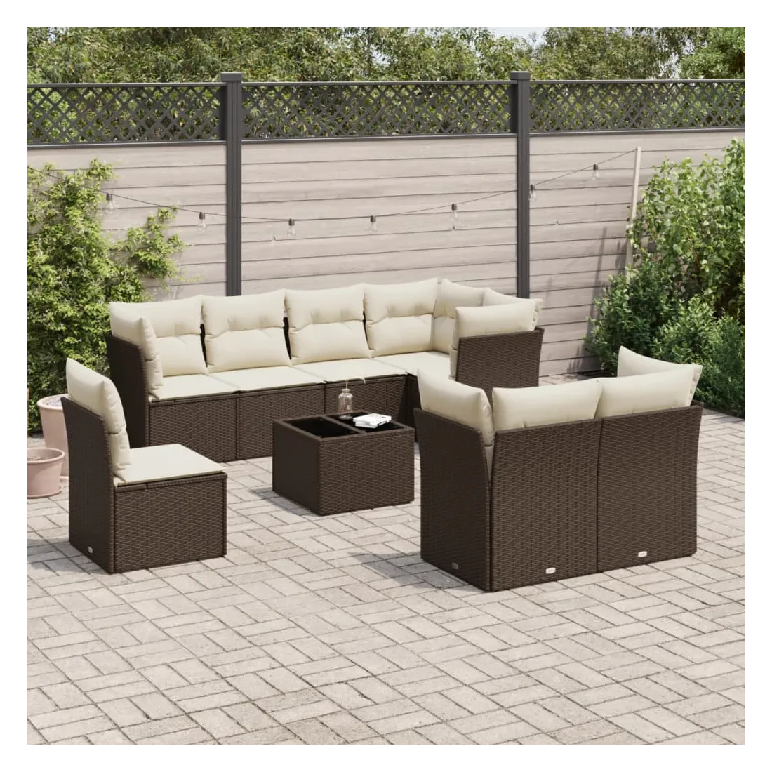 Cet ensemble de canapés de jardin est le complément parfait de votre arrière-cour, terrasse ou patio, offrant un espace confortable et accueillant pour discuter avec la famille et les amis ou simplement se détendre et profiter de l'extérieur. Matériau durable : la résine tressée, également connue sous le nom de poly rotin, est un matériau synthétique solide et nécessitant peu d'entretien qui ressemble au rotin naturel. Il est léger, facile à nettoyer et couramment utilisé pour les meubles d'extérieur en raison de sa durabilité et de ses propriétés de résistance aux intempéries.Fonction de rangement avec sac résistant à l'eau : chaque siège de jardin dispose d'un espace de rangement sous l'assise, complété par un sac résistant à l'eau pour ranger les coussins, les jouets et d'autres objets. Les sacs intérieurs sont dotés d'un couvercle et peuvent être solidement fixés aux sièges à l'aide de bandes auto-agrippantes pour plus de stabilité.Dessus en verre : le dessus de la table d'extérieur est fabriqué en verre trempé solide et durable, ce qui le rend facile à nettoyer avec un chiffon humide et ajoute une touche d'élégance à votre espace extérieur.Housse amovible et lavable : ces coussins de siège sont dotés de housses amovibles pour un lavage et un entretien faciles.Conception modulaire : cet ensemble de meubles d'extérieur a une conception modulaire, ce qui le rend complètement flexible et facile à déplacer, afin que vous puissiez créer un agencement de meubles d'extérieur personnalisé. Bon à savoir :Pour que vos meubles d'extérieur restent beaux, nous vous recommandons de les protéger avec une housse imperméable.