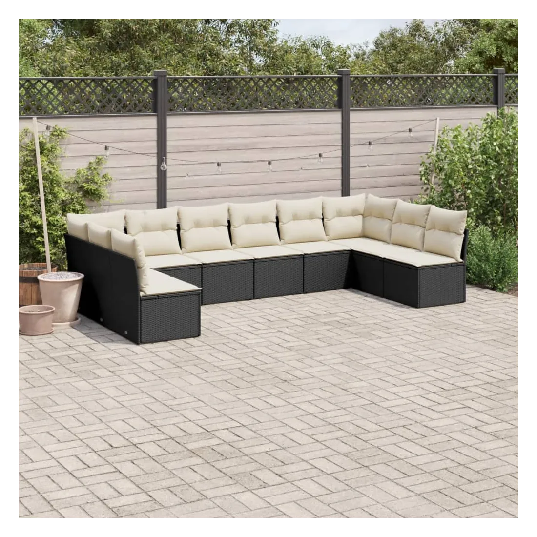 Cet ensemble de canapés de jardin est le complément parfait de votre arrière-cour, terrasse ou patio, offrant un espace confortable et accueillant pour discuter avec la famille et les amis ou simplement se détendre et profiter de l'extérieur. Matériau durable : la résine tressée, également connue sous le nom de poly rotin, est un matériau synthétique solide et nécessitant peu d'entretien qui ressemble au rotin naturel. Il est léger, facile à nettoyer et couramment utilisé pour les meubles d'extérieur en raison de sa durabilité et de ses propriétés de résistance aux intempéries.Fonction de rangement avec sac résistant à l'eau : chaque siège de jardin dispose d'un espace de rangement sous l'assise, complété par un sac résistant à l'eau pour ranger les coussins, les jouets et d'autres objets. Les sacs intérieurs sont dotés d'un couvercle et peuvent être solidement fixés aux sièges à l'aide de bandes auto-agrippantes pour plus de stabilité.Housse amovible et lavable : ces coussins de siège sont dotés de housses amovibles pour un lavage et un entretien faciles.Conception modulaire : cet ensemble de meubles d'extérieur a une conception modulaire, ce qui le rend complètement flexible et facile à déplacer, afin que vous puissiez créer un agencement de meubles d'extérieur personnalisé. Bon à savoir :Pour que vos meubles d'extérieur restent beaux, nous vous recommandons de les protéger avec une housse imperméable.