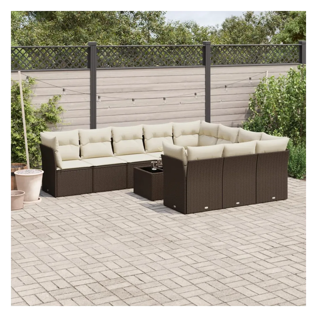 Cet ensemble de canapés de jardin est le complément parfait de votre arrière-cour, terrasse ou patio, offrant un espace confortable et accueillant pour discuter avec la famille et les amis ou simplement se détendre et profiter de l'extérieur. Matériau durable : la résine tressée, également connue sous le nom de poly rotin, est un matériau synthétique solide et nécessitant peu d'entretien qui ressemble au rotin naturel. Il est léger, facile à nettoyer et couramment utilisé pour les meubles d'extérieur en raison de sa durabilité et de ses propriétés de résistance aux intempéries.Fonction de rangement avec sac résistant à l'eau : chaque siège de jardin dispose d'un espace de rangement sous l'assise, complété par un sac résistant à l'eau pour ranger les coussins, les jouets et d'autres objets. Les sacs intérieurs sont dotés d'un couvercle et peuvent être solidement fixés aux sièges à l'aide de bandes auto-agrippantes pour plus de stabilité.Dessus en verre : le dessus de la table d'extérieur est fabriqué en verre trempé solide et durable, ce qui le rend facile à nettoyer avec un chiffon humide et ajoute une touche d'élégance à votre espace extérieur.Housse amovible et lavable : ces coussins de siège sont dotés de housses amovibles pour un lavage et un entretien faciles.Conception modulaire : cet ensemble de meubles d'extérieur a une conception modulaire, ce qui le rend complètement flexible et facile à déplacer, afin que vous puissiez créer un agencement de meubles d'extérieur personnalisé. Bon à savoir :Pour que vos meubles d'extérieur restent beaux, nous vous recommandons de les protéger avec une housse imperméable.