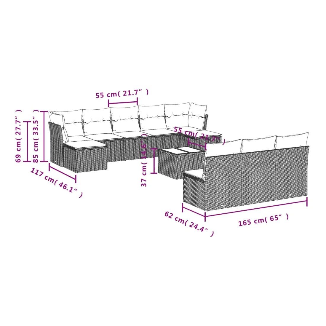 - Dimensions : 55 x 55 x 37 cm (L x l x H)