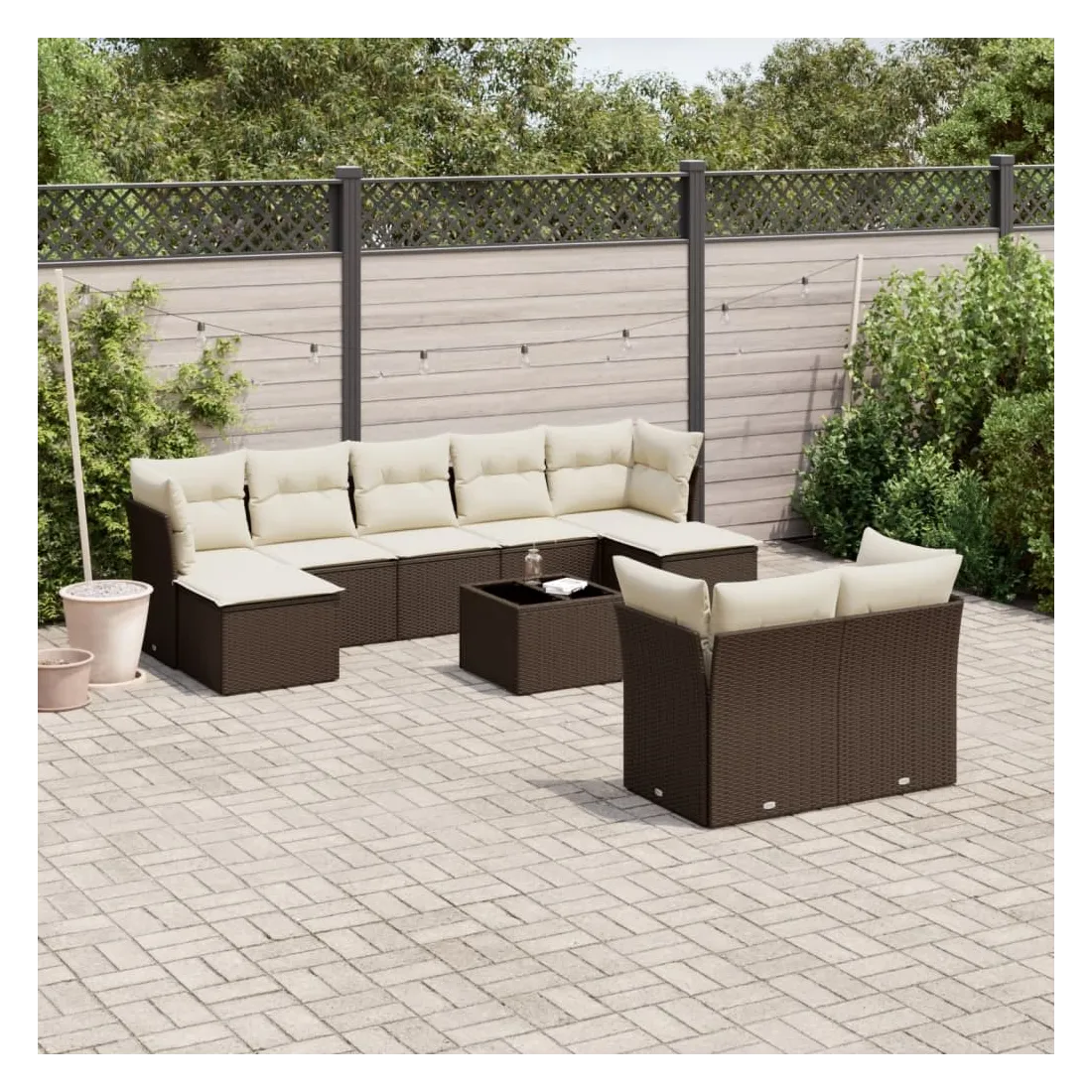 Cet ensemble de canapés de jardin est le complément parfait de votre arrière-cour, terrasse ou patio, offrant un espace confortable et accueillant pour discuter avec la famille et les amis ou simplement se détendre et profiter de l'extérieur. Matériau durable : la résine tressée, également connue sous le nom de poly rotin, est un matériau synthétique solide et nécessitant peu d'entretien qui ressemble au rotin naturel. Il est léger, facile à nettoyer et couramment utilisé pour les meubles d'extérieur en raison de sa durabilité et de ses propriétés de résistance aux intempéries.Fonction de rangement avec sac résistant à l'eau : chaque siège de jardin dispose d'un espace de rangement sous l'assise, complété par un sac résistant à l'eau pour ranger les coussins, les jouets et d'autres objets. Les sacs intérieurs sont dotés d'un couvercle et peuvent être solidement fixés aux sièges à l'aide de bandes auto-agrippantes pour plus de stabilité.Dessus en verre : le dessus de la table d'extérieur est fabriqué en verre trempé solide et durable, ce qui le rend facile à nettoyer avec un chiffon humide et ajoute une touche d'élégance à votre espace extérieur.Housse amovible et lavable : ces coussins de siège sont dotés de housses amovibles pour un lavage et un entretien faciles.Conception modulaire : cet ensemble de meubles d'extérieur a une conception modulaire, ce qui le rend complètement flexible et facile à déplacer, afin que vous puissiez créer un agencement de meubles d'extérieur personnalisé. Bon à savoir :Pour que vos meubles d'extérieur restent beaux, nous vous recommandons de les protéger avec une housse imperméable.