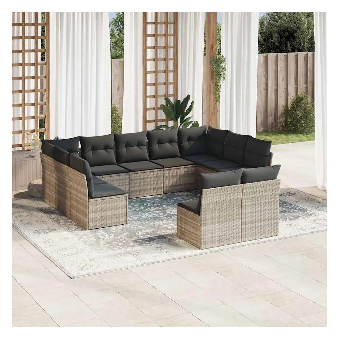 Cet ensemble de canapés de jardin est le complément parfait de votre arrière-cour, terrasse ou patio, offrant un espace confortable et accueillant pour discuter avec la famille et les amis ou simplement se détendre et profiter de l'extérieur. Matériau durable : la résine tressée, également connue sous le nom de poly rotin, est un matériau synthétique solide et nécessitant peu d'entretien qui ressemble au rotin naturel. Il est léger, facile à nettoyer et couramment utilisé pour les meubles d'extérieur en raison de sa durabilité et de ses propriétés de résistance aux intempéries.Fonction de rangement avec sac résistant à l'eau : chaque siège de jardin dispose d'un espace de rangement sous l'assise, complété par un sac résistant à l'eau pour ranger les coussins, les jouets et d'autres objets. Les sacs intérieurs sont dotés d'un couvercle et peuvent être solidement fixés aux sièges à l'aide de bandes auto-agrippantes pour plus de stabilité.Housse amovible et lavable : ces coussins de siège sont dotés de housses amovibles pour un lavage et un entretien faciles.Conception modulaire : cet ensemble de meubles d'extérieur a une conception modulaire, ce qui le rend complètement flexible et facile à déplacer, afin que vous puissiez créer un agencement de meubles d'extérieur personnalisé. Bon à savoir :Pour que vos meubles d'extérieur restent beaux, nous vous recommandons de les protéger avec une housse imperméable.