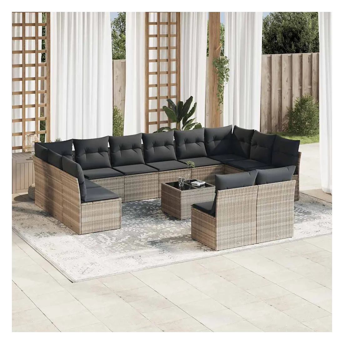 Cet ensemble de canapés de jardin est le complément parfait de votre arrière-cour, terrasse ou patio, offrant un espace confortable et accueillant pour discuter avec la famille et les amis ou simplement se détendre et profiter de l'extérieur. Matériau durable : la résine tressée, également connue sous le nom de poly rotin, est un matériau synthétique solide et nécessitant peu d'entretien qui ressemble au rotin naturel. Il est léger, facile à nettoyer et couramment utilisé pour les meubles d'extérieur en raison de sa durabilité et de ses propriétés de résistance aux intempéries.Fonction de rangement avec sac résistant à l'eau : chaque siège de jardin dispose d'un espace de rangement sous l'assise, complété par un sac résistant à l'eau pour ranger les coussins, les jouets et d'autres objets. Les sacs intérieurs sont dotés d'un couvercle et peuvent être solidement fixés aux sièges à l'aide de bandes auto-agrippantes pour plus de stabilité.Dessus en verre : le dessus de la table d'extérieur est fabriqué en verre trempé solide et durable, ce qui le rend facile à nettoyer avec un chiffon humide et ajoute une touche d'élégance à votre espace extérieur.Housse amovible et lavable : ces coussins de siège sont dotés de housses amovibles pour un lavage et un entretien faciles.Conception modulaire : cet ensemble de meubles d'extérieur a une conception modulaire, ce qui le rend complètement flexible et facile à déplacer, afin que vous puissiez créer un agencement de meubles d'extérieur personnalisé. Bon à savoir :Pour que vos meubles d'extérieur restent beaux, nous vous recommandons de les protéger avec une housse imperméable.