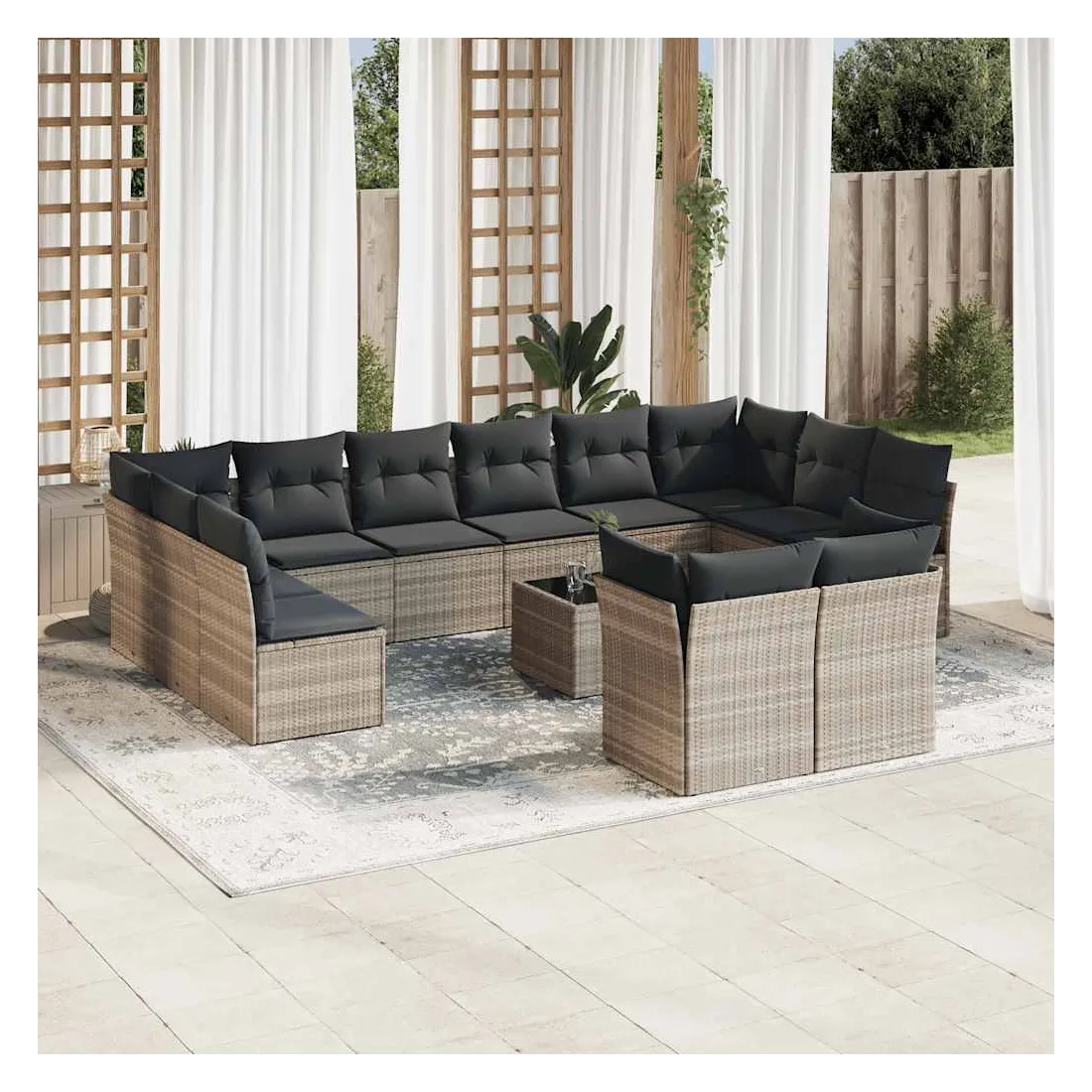 Cet ensemble de canapés de jardin est le complément parfait de votre arrière-cour, terrasse ou patio, offrant un espace confortable et accueillant pour discuter avec la famille et les amis ou simplement se détendre et profiter de l'extérieur. Matériau durable : la résine tressée, également connue sous le nom de poly rotin, est un matériau synthétique solide et nécessitant peu d'entretien qui ressemble au rotin naturel. Il est léger, facile à nettoyer et couramment utilisé pour les meubles d'extérieur en raison de sa durabilité et de ses propriétés de résistance aux intempéries.Fonction de rangement avec sac résistant à l'eau : chaque siège de jardin dispose d'un espace de rangement sous l'assise, complété par un sac résistant à l'eau pour ranger les coussins, les jouets et d'autres objets. Les sacs intérieurs sont dotés d'un couvercle et peuvent être solidement fixés aux sièges à l'aide de bandes auto-agrippantes pour plus de stabilité.Dessus en verre : le dessus de la table d'extérieur est fabriqué en verre trempé solide et durable, ce qui le rend facile à nettoyer avec un chiffon humide et ajoute une touche d'élégance à votre espace extérieur.Housse amovible et lavable : ces coussins de siège sont dotés de housses amovibles pour un lavage et un entretien faciles.Conception modulaire : cet ensemble de meubles d'extérieur a une conception modulaire, ce qui le rend complètement flexible et facile à déplacer, afin que vous puissiez créer un agencement de meubles d'extérieur personnalisé. Bon à savoir :Pour que vos meubles d'extérieur restent beaux, nous vous recommandons de les protéger avec une housse imperméable.