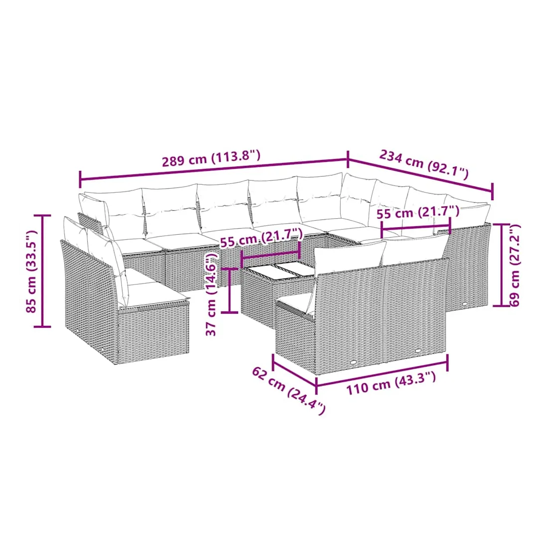 - Dimensions du coussin de dossier : 55 x 45 x 13 cm (L x l x é)