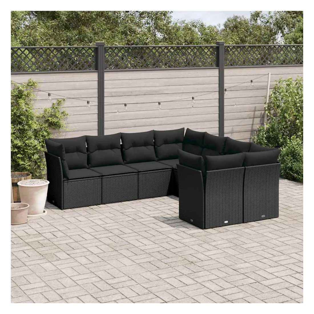 Cet ensemble de canapés de jardin est le complément parfait de votre arrière-cour, terrasse ou patio, offrant un espace confortable et accueillant pour discuter avec la famille et les amis ou simplement se détendre et profiter de l'extérieur. Matériau durable : la résine tressée, également connue sous le nom de poly rotin, est un matériau synthétique solide et nécessitant peu d'entretien qui ressemble au rotin naturel. Il est léger, facile à nettoyer et couramment utilisé pour les meubles d'extérieur en raison de sa durabilité et de ses propriétés de résistance aux intempéries.Fonction de rangement avec sac résistant à l'eau : chaque siège de jardin dispose d'un espace de rangement sous l'assise, complété par un sac résistant à l'eau pour ranger les coussins, les jouets et d'autres objets. Les sacs intérieurs sont dotés d'un couvercle et peuvent être solidement fixés aux sièges à l'aide de bandes auto-agrippantes pour plus de stabilité.Housse amovible et lavable : ces coussins de siège sont dotés de housses amovibles pour un lavage et un entretien faciles.Conception modulaire : cet ensemble de meubles d'extérieur a une conception modulaire, ce qui le rend complètement flexible et facile à déplacer, afin que vous puissiez créer un agencement de meubles d'extérieur personnalisé. Bon à savoir :Pour que vos meubles d'extérieur restent beaux, nous vous recommandons de les protéger avec une housse imperméable.