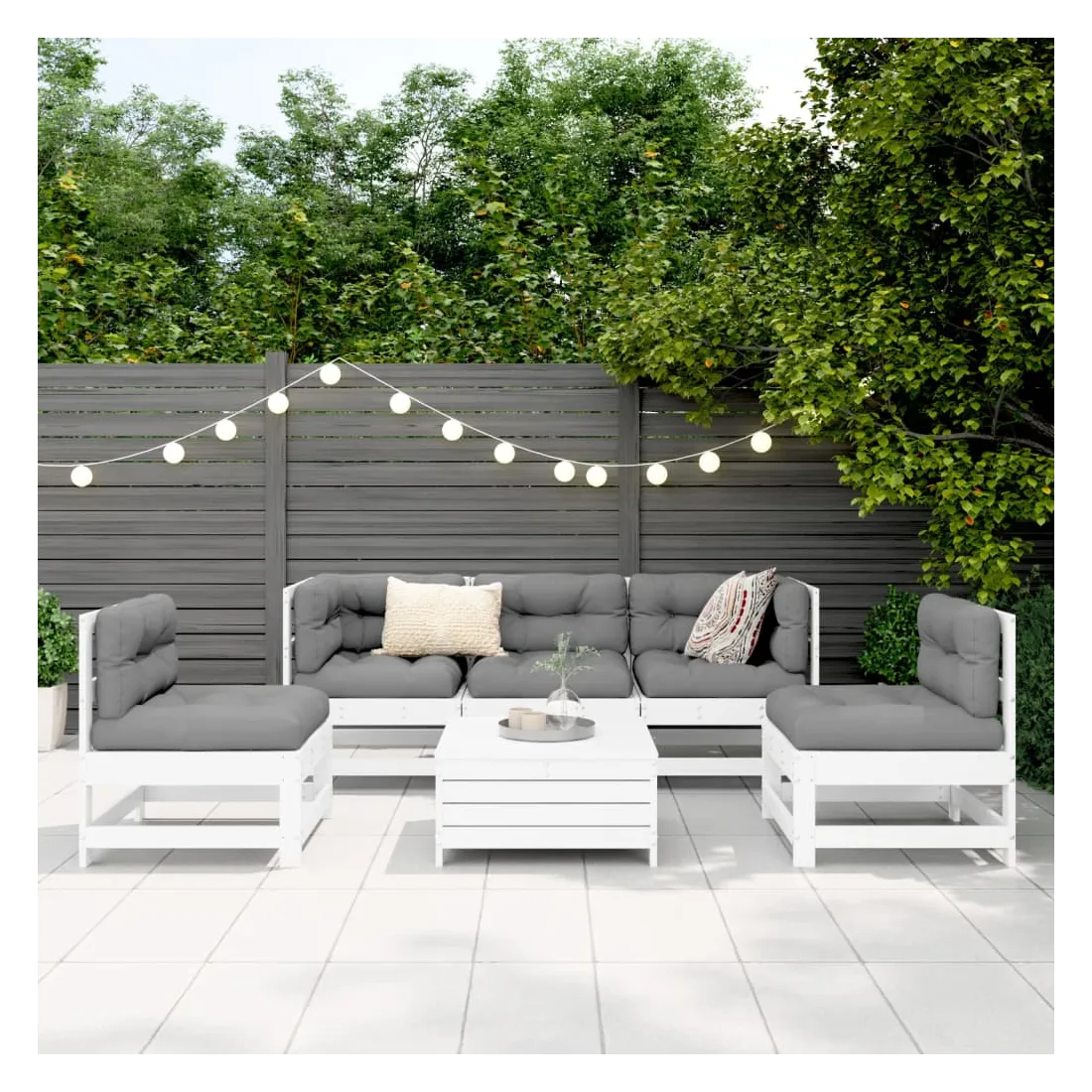 Cet ensemble de salon de jardin en bois avec un design à lattes sera un excellent complément à votre jardin, patio ou terrasse pour profiter d'un moment agréable avec votre famille ou vos amis. Matériau robuste et durable : le bois de pin massif est connu pour sa résistance et sa durabilité. Ses grains droits et ses nœuds distinctifs contribuent à son charme rustique. Bien ventilé et prévention de l'accumulation d'eau : la conception à lattes favorise une circulation optimale de l'air et empêche efficacement l'accumulation d'eau, assurant ainsi une assise sèche et confortable. Utilisation polyvalente : le repose-pied de jardin peut non seulement être utilisé pour s'asseoir ou se détendre, mais il peut également être utilisé comme table basse pour contenir vos boissons, votre nourriture et d'autres décorations. Conception modulaire : cet ensemble de meubles d'extérieur a une conception modulaire, ce qui le rend complètement flexible et facile à déplacer, afin que vous puissiez créer un agencement de meubles d'extérieur personnalisé. Bon à savoir :Pour que vos meubles d'extérieur restent beaux, nous vous recommandons de les protéger avec une housse imperméable.