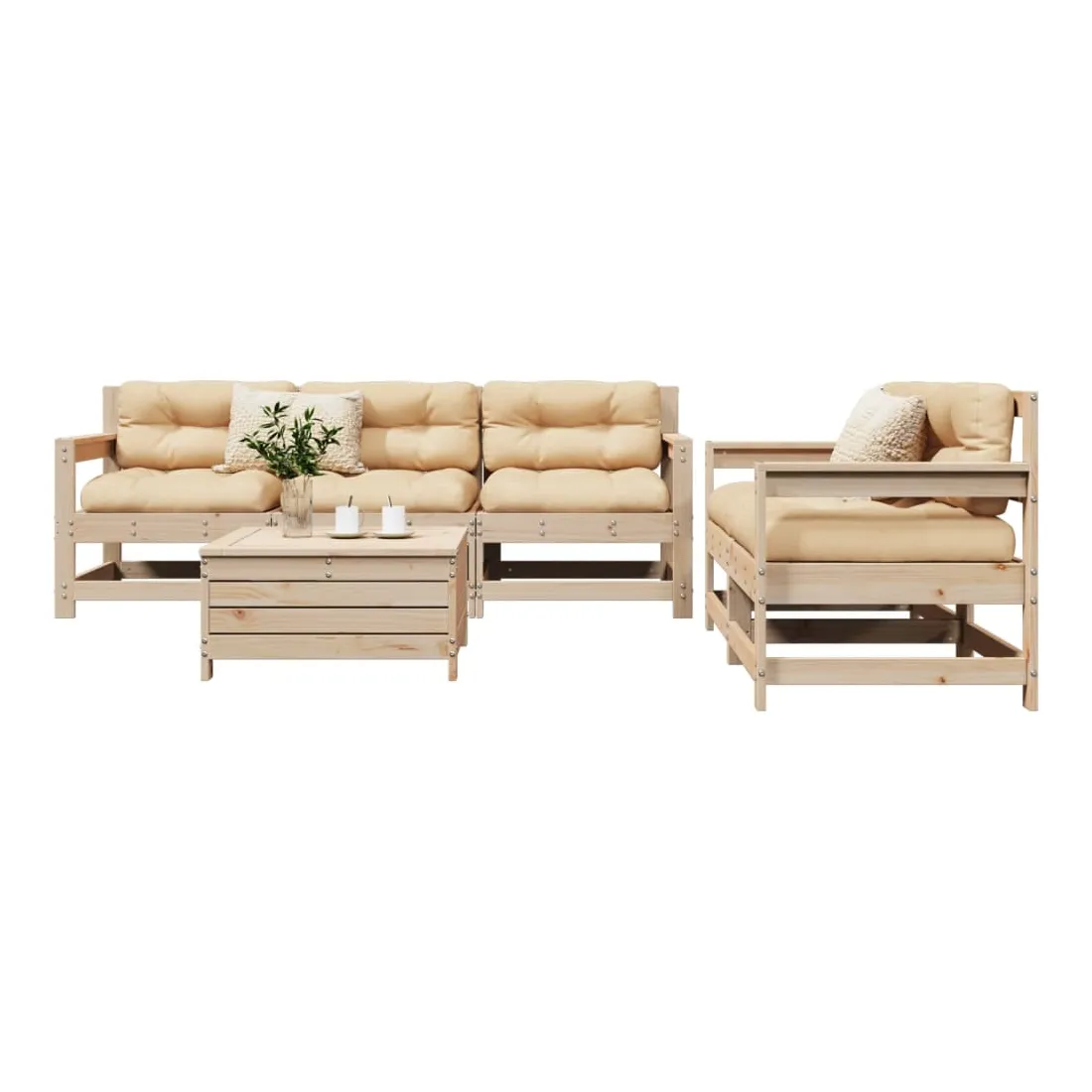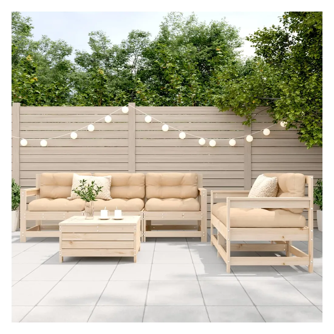 Cet ensemble de salon de jardin en bois avec un design à lattes sera un excellent complément à votre jardin, patio ou terrasse pour profiter d'un moment agréable avec votre famille ou vos amis. Matériau robuste et durable : le bois de pin massif est connu pour sa résistance et sa durabilité. Ses grains droits et ses nœuds distinctifs contribuent à son charme rustique. Bien ventilé et prévention de l'accumulation d'eau : la conception à lattes favorise une circulation optimale de l'air et empêche efficacement l'accumulation d'eau, assurant ainsi une assise sèche et confortable. Utilisation polyvalente : le repose-pied de jardin peut non seulement être utilisé pour s'asseoir ou se détendre, mais il peut également être utilisé comme table basse pour contenir vos boissons, votre nourriture et d'autres décorations. Conception modulaire : cet ensemble de meubles d'extérieur a une conception modulaire, ce qui le rend complètement flexible et facile à déplacer, afin que vous puissiez créer un agencement de meubles d'extérieur personnalisé. Bon à savoir :Pour que vos meubles d'extérieur restent beaux, nous vous recommandons de les protéger avec une housse imperméable.