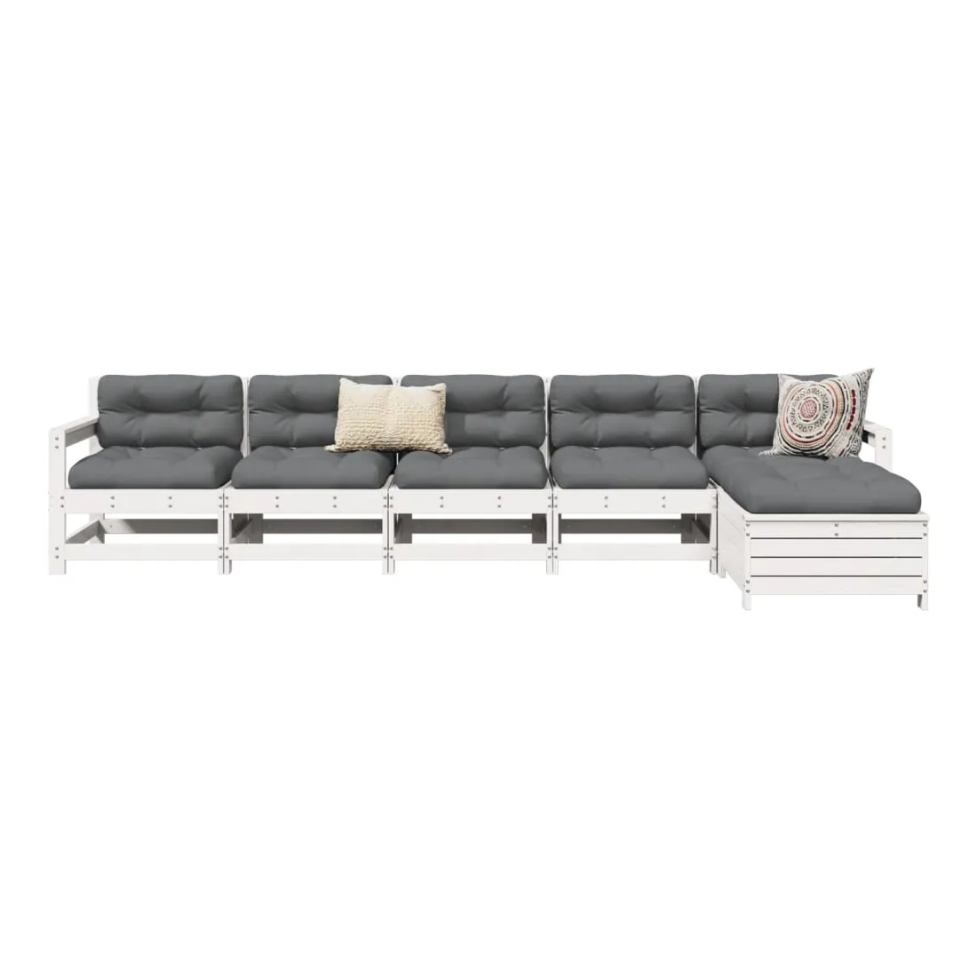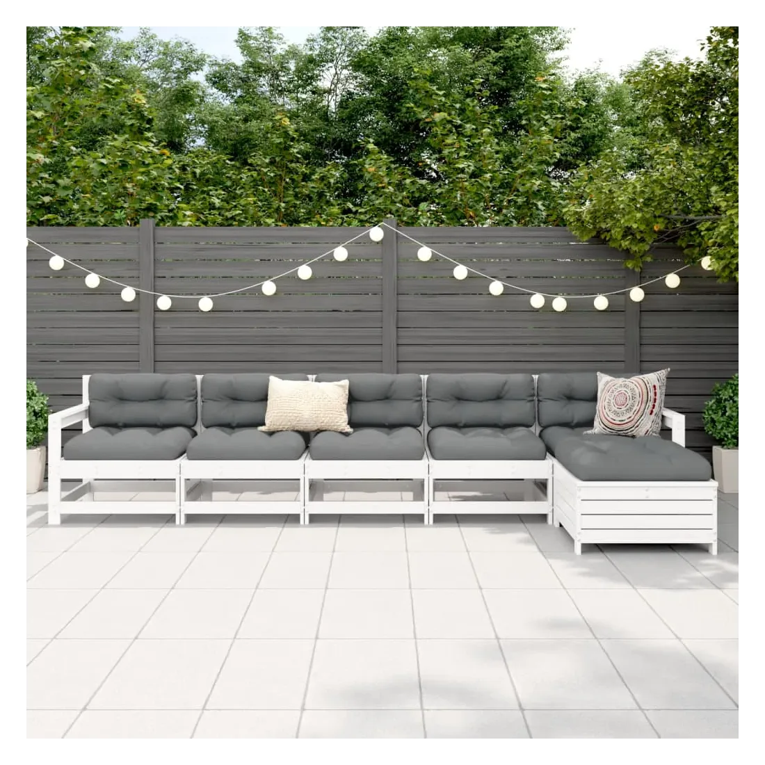 Cet ensemble de salon de jardin en bois avec un design à lattes sera un excellent complément à votre jardin, patio ou terrasse pour profiter d'un moment agréable avec votre famille ou vos amis. Matériau robuste et durable : le bois de pin massif est connu pour sa résistance et sa durabilité. Ses grains droits et ses nœuds distinctifs contribuent à son charme rustique. Bien ventilé et prévention de l'accumulation d'eau : la conception à lattes favorise une circulation optimale de l'air et empêche efficacement l'accumulation d'eau, assurant ainsi une assise sèche et confortable. Utilisation polyvalente : le repose-pied de jardin peut non seulement être utilisé pour s'asseoir ou se détendre, mais il peut également être utilisé comme table basse pour contenir vos boissons, votre nourriture et d'autres décorations. Conception modulaire : cet ensemble de meubles d'extérieur a une conception modulaire, ce qui le rend complètement flexible et facile à déplacer, afin que vous puissiez créer un agencement de meubles d'extérieur personnalisé. Bon à savoir :Pour que vos meubles d'extérieur restent beaux, nous vous recommandons de les protéger avec une housse imperméable.
