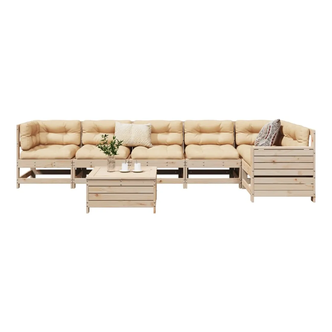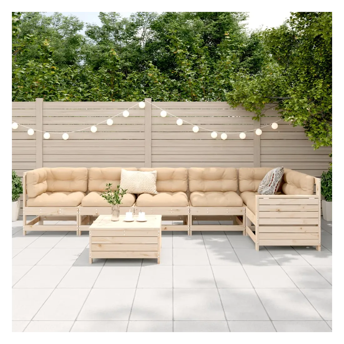 Cet ensemble de salon de jardin en bois avec un design à lattes sera un excellent complément à votre jardin, patio ou terrasse pour profiter d'un moment agréable avec votre famille ou vos amis. Matériau robuste et durable : le bois de pin massif est connu pour sa résistance et sa durabilité. Ses grains droits et ses nœuds distinctifs contribuent à son charme rustique. Bien ventilé et prévention de l'accumulation d'eau : la conception à lattes favorise une circulation optimale de l'air et empêche efficacement l'accumulation d'eau, assurant ainsi une assise sèche et confortable. Utilisation polyvalente : le repose-pied de jardin peut non seulement être utilisé pour s'asseoir ou se détendre, mais il peut également être utilisé comme table basse pour contenir vos boissons, votre nourriture et d'autres décorations. Table d'appoint pratique : ce mobilier d'extérieur comprend une table d'appoint pliable avec un ressort à gaz sur les accoudoirs, offrant un endroit pratique pour garder vos essentiels à portée de main. Conception modulaire : cet ensemble de meubles d'extérieur a une conception modulaire, ce qui le rend complètement flexible et facile à déplacer, afin que vous puissiez créer un agencement de meubles d'extérieur personnalisé. Bon à savoir :Pour que vos meubles d'extérieur restent beaux, nous vous recommandons de les protéger avec une housse imperméable.