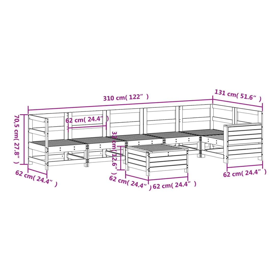 - Dimensions du repose-pied : 62 x 62 x 32 cm (l x P x H)
