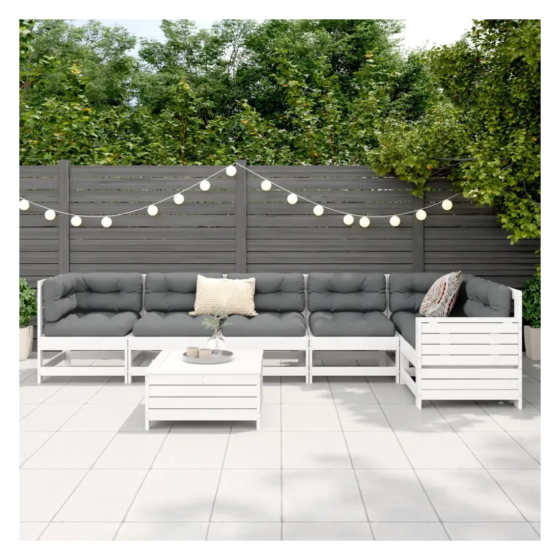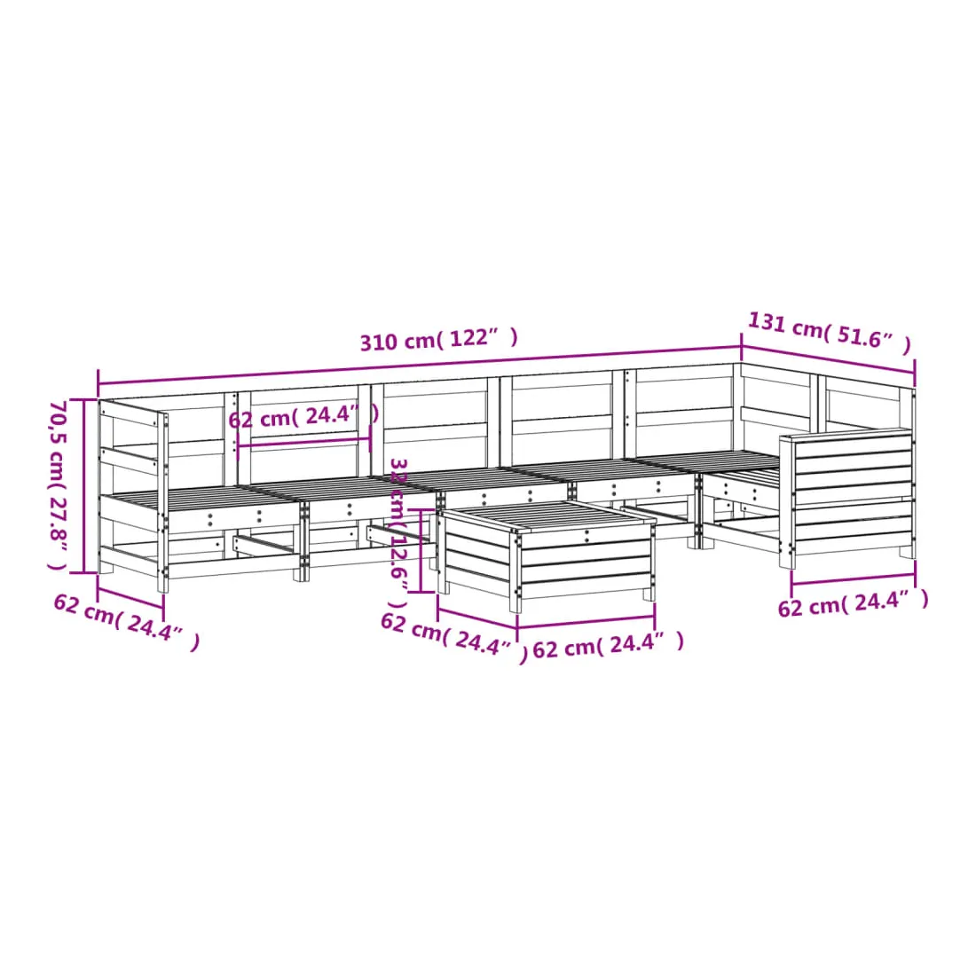 Cet ensemble de salon de jardin en bois avec un design à lattes sera un excellent complément à votre jardin, patio ou terrasse pour profiter d'un moment agréable avec votre famille ou vos amis. Matériau robuste et durable : le bois de pin massif est connu pour sa résistance et sa durabilité. Ses grains droits et ses nœuds distinctifs contribuent à son charme rustique. Bien ventilé et prévention de l'accumulation d'eau : la conception à lattes favorise une circulation optimale de l'air et empêche efficacement l'accumulation d'eau, assurant ainsi une assise sèche et confortable. Utilisation polyvalente : le repose-pied de jardin peut non seulement être utilisé pour s'asseoir ou se détendre, mais il peut également être utilisé comme table basse pour contenir vos boissons, votre nourriture et d'autres décorations. Table d'appoint pratique : ce mobilier d'extérieur comprend une table d'appoint pliable avec un ressort à gaz sur les accoudoirs, offrant un endroit pratique pour garder vos essentiels à portée de main. Conception modulaire : cet ensemble de meubles d'extérieur a une conception modulaire, ce qui le rend complètement flexible et facile à déplacer, afin que vous puissiez créer un agencement de meubles d'extérieur personnalisé. Bon à savoir :Pour que vos meubles d'extérieur restent beaux, nous vous recommandons de les protéger avec une housse imperméable.