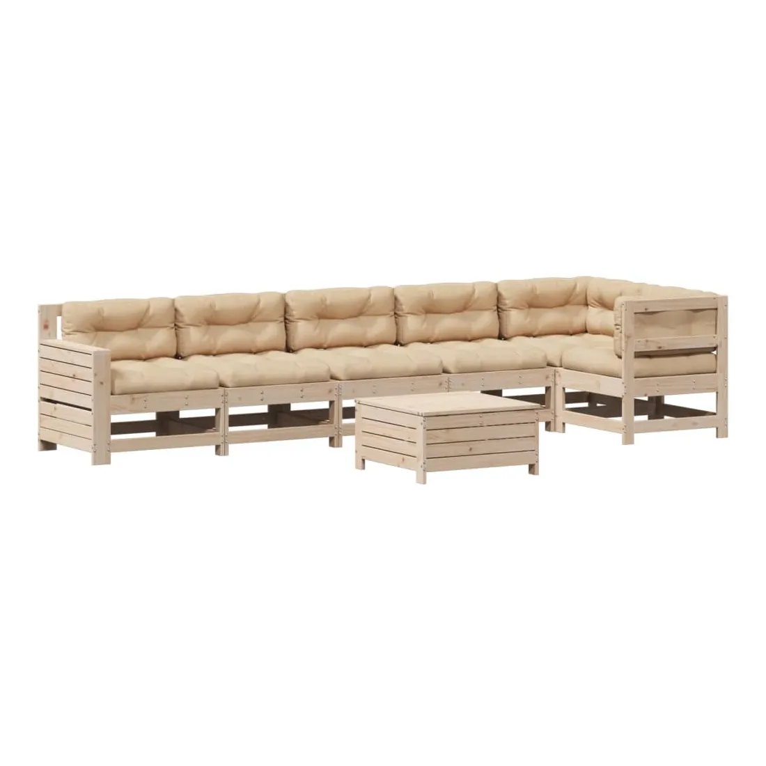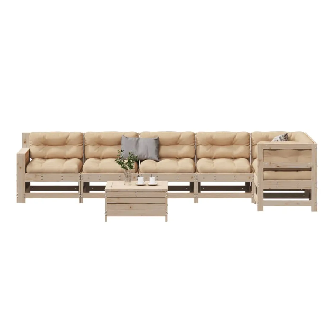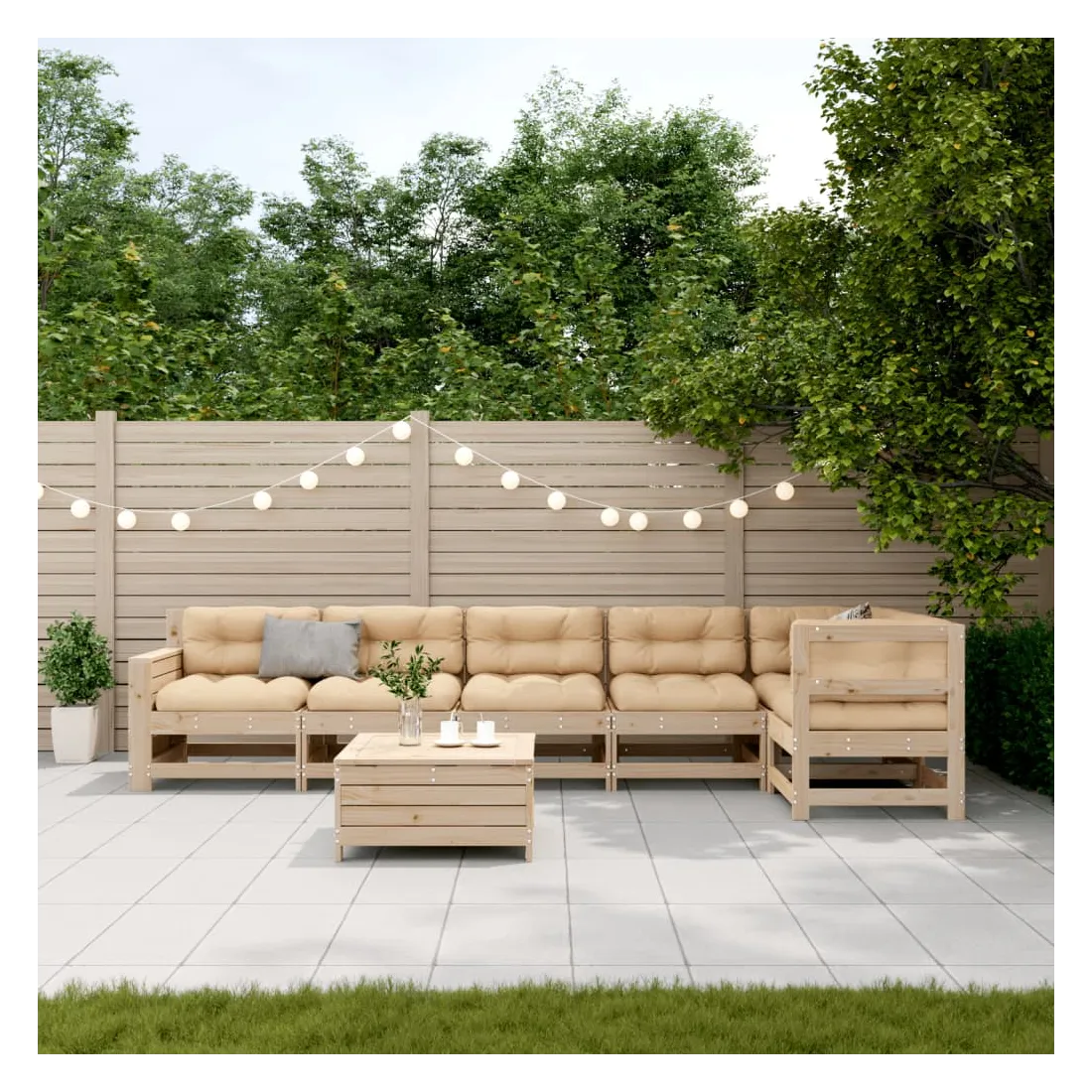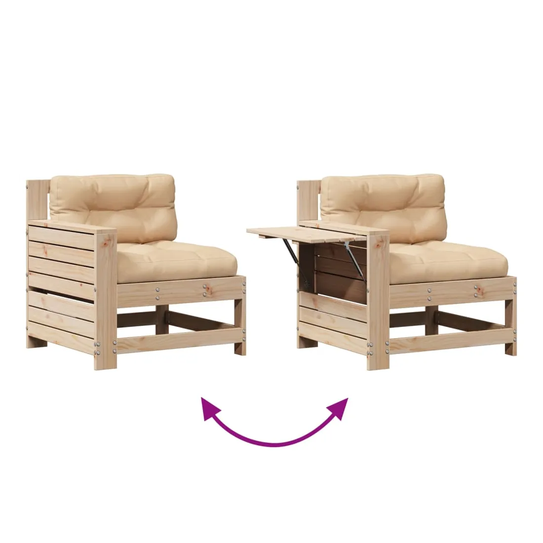 Cet ensemble de salon de jardin en bois avec un design à lattes sera un excellent complément à votre jardin, patio ou terrasse pour profiter d'un moment agréable avec votre famille ou vos amis. Bois de pin massif : le bois de pin massif est un matériau naturel magnifique. Le bois de pin a un grain droit et les nœuds donnent au matériau son aspect caractéristique et rustique.Expérience d'assise confortable : le dossier et l'accoudoir ajoutent un confort d'assise supplémentaire à l'ensemble de meubles de jardin. De plus, le coussin bien rembourré vous permet de vous asseoir confortablement.Utilisation polyvalente : le pouf d'extérieur avec couvercle peut non seulement être utilisé pour s'asseoir ou se détendre, mais il peut également être utilisé comme table basse pour contenir vos boissons, votre nourriture et le meuble de jardin dispose d'un espace de rangement sous le siège. Table d'appoint pratique : ce mobilier d'extérieur comprend une table d'appoint pliable avec un ressort à gaz sur les accoudoirs, offrant un endroit pratique pour garder vos essentiels à portée de main.Conception modulaire : cet ensemble de meubles d'extérieur a une conception modulaire, ce qui le rend complètement flexible et facile à déplacer, afin que vous puissiez créer un agencement de meubles d'extérieur personnalisé. Bon à savoir :Pour que vos meubles d'extérieur restent beaux, nous vous recommandons de les protéger avec une housse imperméable.