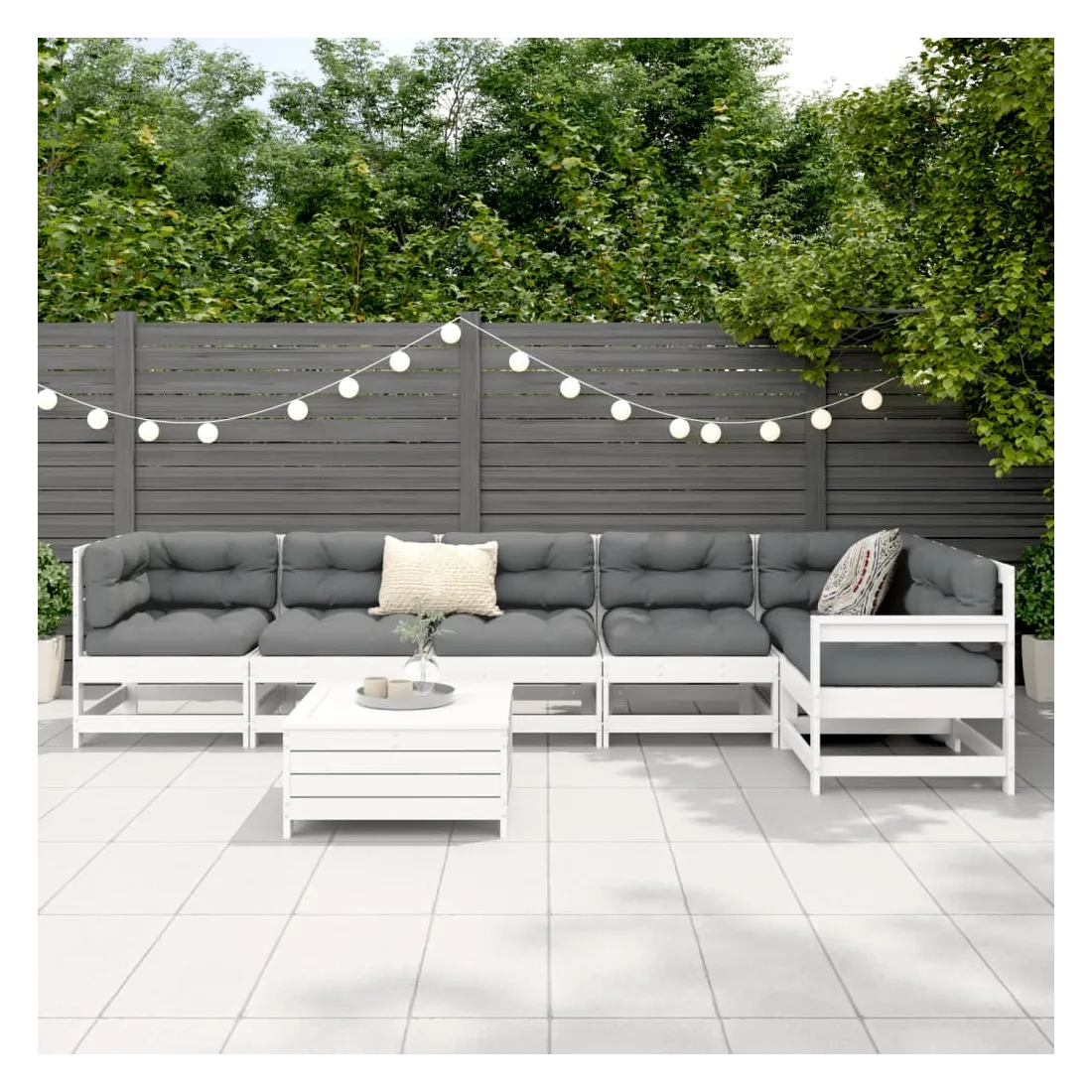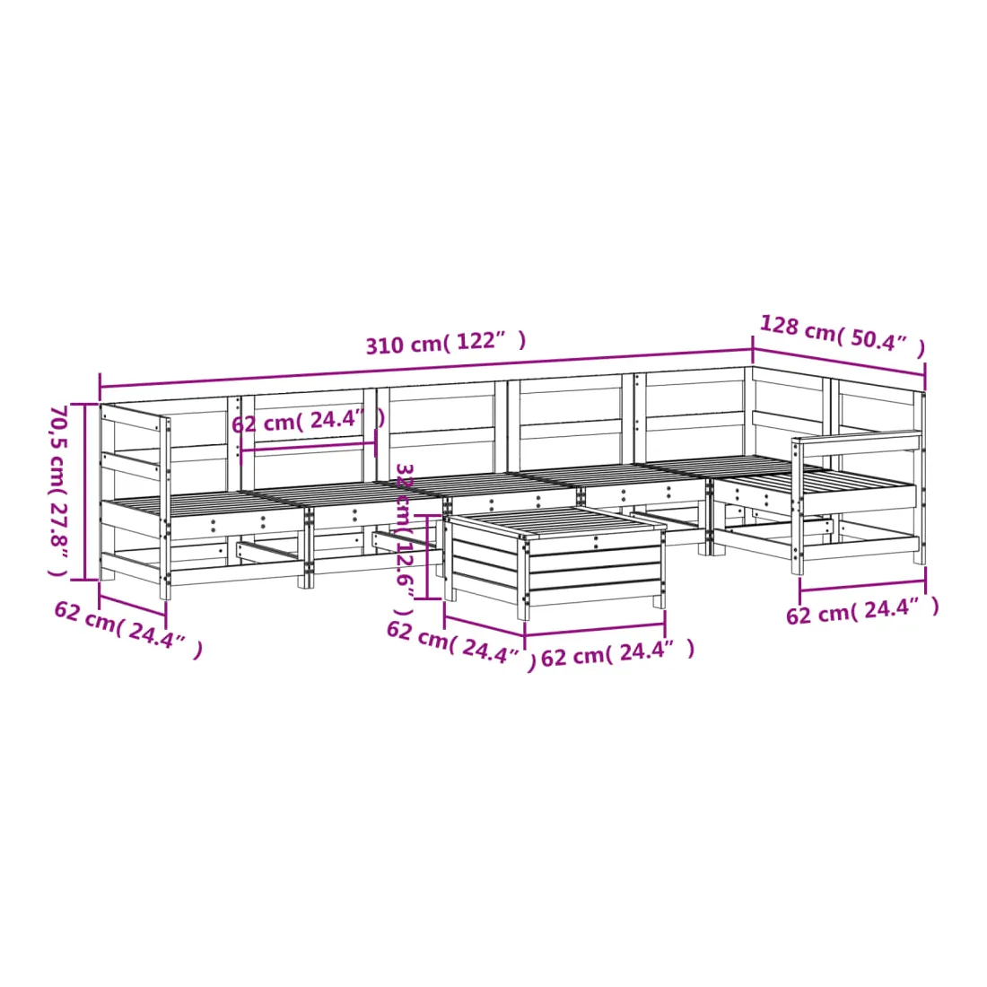 Cet ensemble de salon de jardin en bois avec un design à lattes sera un excellent complément à votre jardin, patio ou terrasse pour profiter d'un moment agréable avec votre famille ou vos amis. Matériau robuste et durable : le bois de pin massif est connu pour sa résistance et sa durabilité. Ses grains droits et ses nœuds distinctifs contribuent à son charme rustique. Bien ventilé et prévention de l'accumulation d'eau : la conception à lattes favorise une circulation optimale de l'air et empêche efficacement l'accumulation d'eau, assurant ainsi une assise sèche et confortable. Utilisation polyvalente : le repose-pied de jardin peut non seulement être utilisé pour s'asseoir ou se détendre, mais il peut également être utilisé comme table basse pour contenir vos boissons, votre nourriture et d'autres décorations. Conception modulaire : cet ensemble de meubles d'extérieur a une conception modulaire, ce qui le rend complètement flexible et facile à déplacer, afin que vous puissiez créer un agencement de meubles d'extérieur personnalisé. Bon à savoir :Pour que vos meubles d'extérieur restent beaux, nous vous recommandons de les protéger avec une housse imperméable.