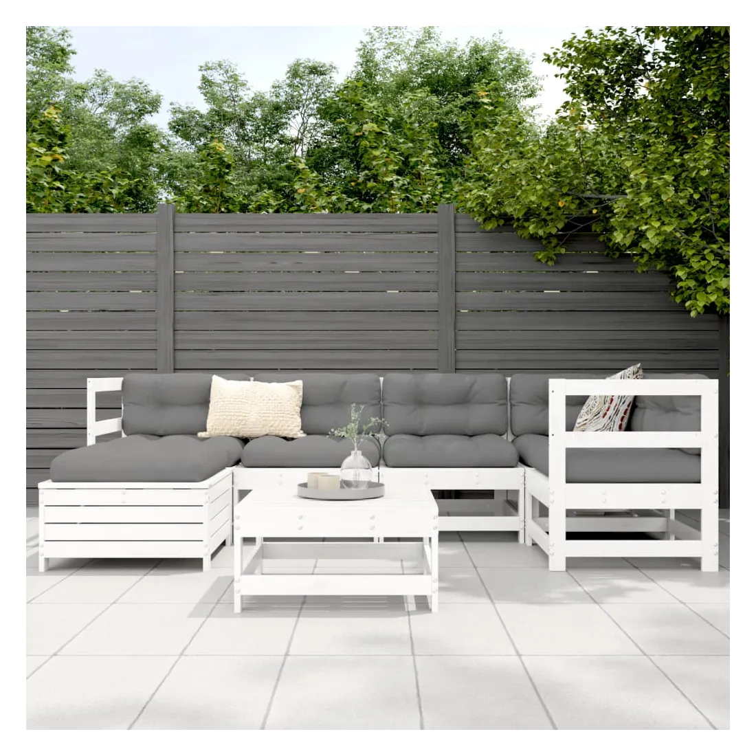 Cet ensemble de salon de jardin en bois avec un design à lattes sera un excellent complément à votre jardin, patio ou terrasse pour profiter d'un moment agréable avec votre famille ou vos amis. Matériau robuste et durable : le bois de pin massif est connu pour sa résistance et sa durabilité. Ses grains droits et ses nœuds distinctifs contribuent à son charme rustique. Bien ventilé et prévention de l'accumulation d'eau : la conception à lattes favorise une circulation optimale de l'air et empêche efficacement l'accumulation d'eau, assurant ainsi une assise sèche et confortable. Utilisation polyvalente : le repose-pied de jardin peut non seulement être utilisé pour s'asseoir ou se détendre, mais il peut également être utilisé comme table basse pour contenir vos boissons, votre nourriture et d'autres décorations. Conception modulaire : cet ensemble de meubles d'extérieur a une conception modulaire, ce qui le rend complètement flexible et facile à déplacer, afin que vous puissiez créer un agencement de meubles d'extérieur personnalisé. Bon à savoir :Pour que vos meubles d'extérieur restent beaux, nous vous recommandons de les protéger avec une housse imperméable.