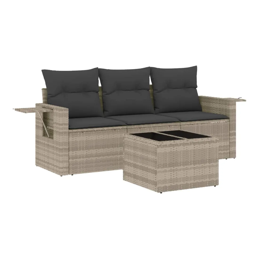 Cet ensemble de canapés de jardin est le complément parfait de votre arrière-cour, terrasse ou patio, offrant un espace confortable et accueillant pour discuter avec la famille et les amis ou simplement se détendre et profiter de l'extérieur. Matériau durable : la résine tressée, également connue sous le nom de poly rotin, est un matériau synthétique solide et nécessitant peu d'entretien qui ressemble au rotin naturel. Il est léger, facile à nettoyer et couramment utilisé pour les meubles d'extérieur en raison de sa durabilité et de ses propriétés de résistance aux intempéries.Fonction de rangement avec sac résistant à l'eau : le mobilier de jardin dispose d'un espace de rangement sous l'assise, complété par un sac résistant à l'eau pour ranger coussins, jouets et autres objets. Le sac intérieur peut être solidement fixé au mobilier d'extérieur grâce à des attaches auto-agrippantes pour plus de stabilité.Table d'appoint pratique : ce mobilier d'extérieur comprend une table d'appoint pliable avec un ressort à gaz sur les accoudoirs, offrant un endroit pratique pour garder vos essentiels à portée de main.Housse amovible et lavable : ces coussins de siège sont dotés de housses amovibles pour un lavage et un entretien faciles.Conception modulaire : cet ensemble de meubles d'extérieur a une conception modulaire, ce qui le rend complètement flexible et facile à déplacer, afin que vous puissiez créer un agencement de meubles d'extérieur personnalisé. Bon à savoir :Pour que vos meubles d'extérieur restent beaux, nous vous recommandons de les protéger avec une housse imperméable.