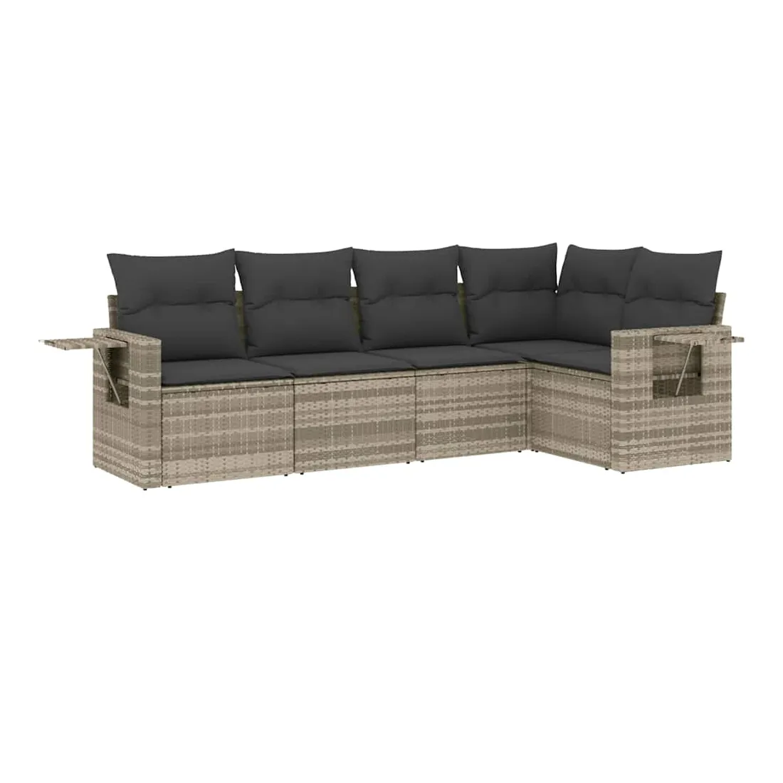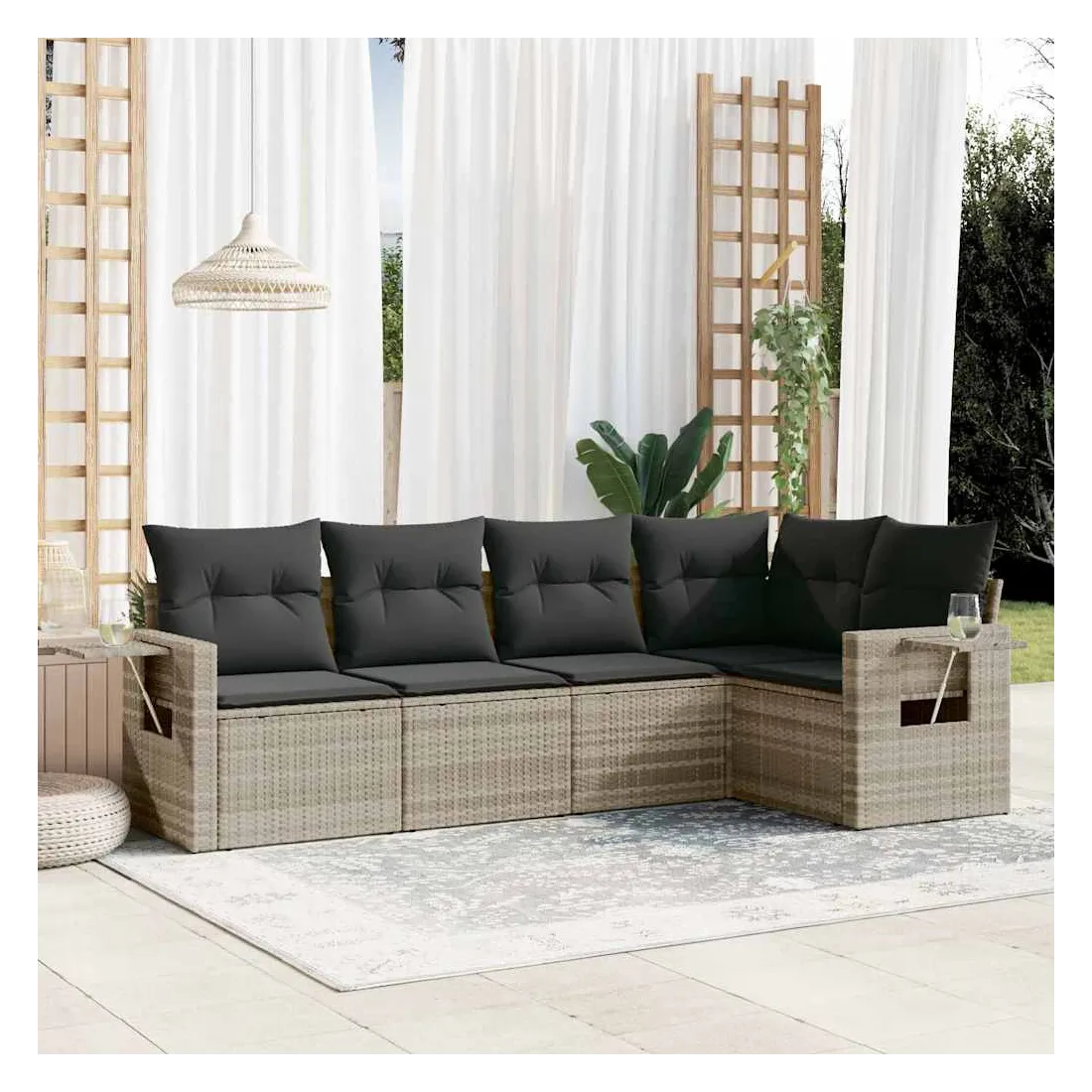 Salon de jardin 5 pcs avec coussins gris clair résine tressée