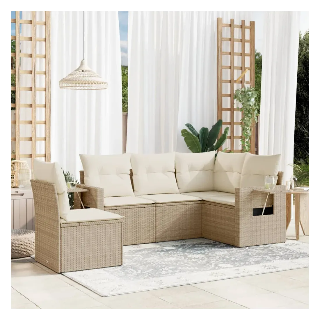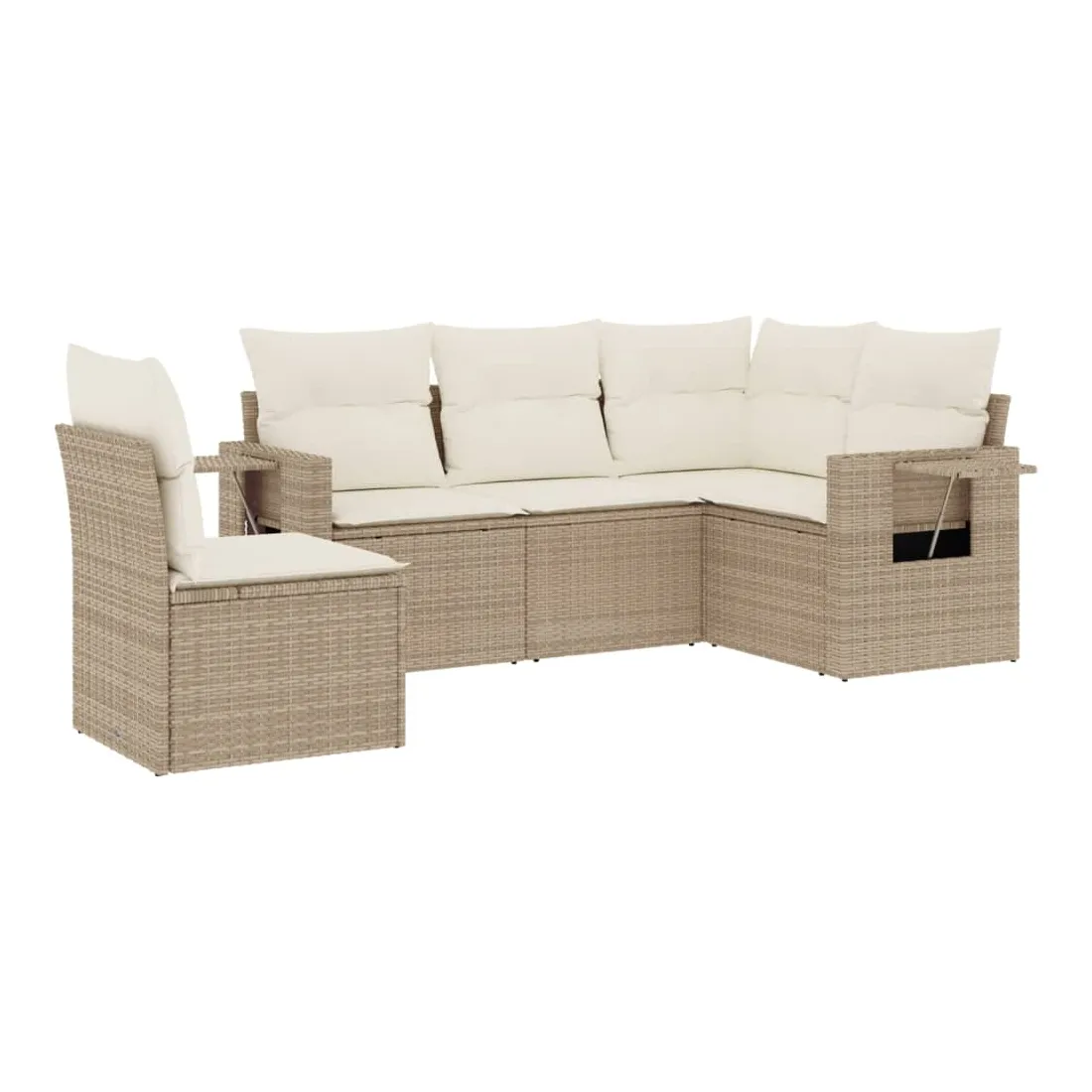 Salon de jardin avec coussins 5 pcs beige résine tressée