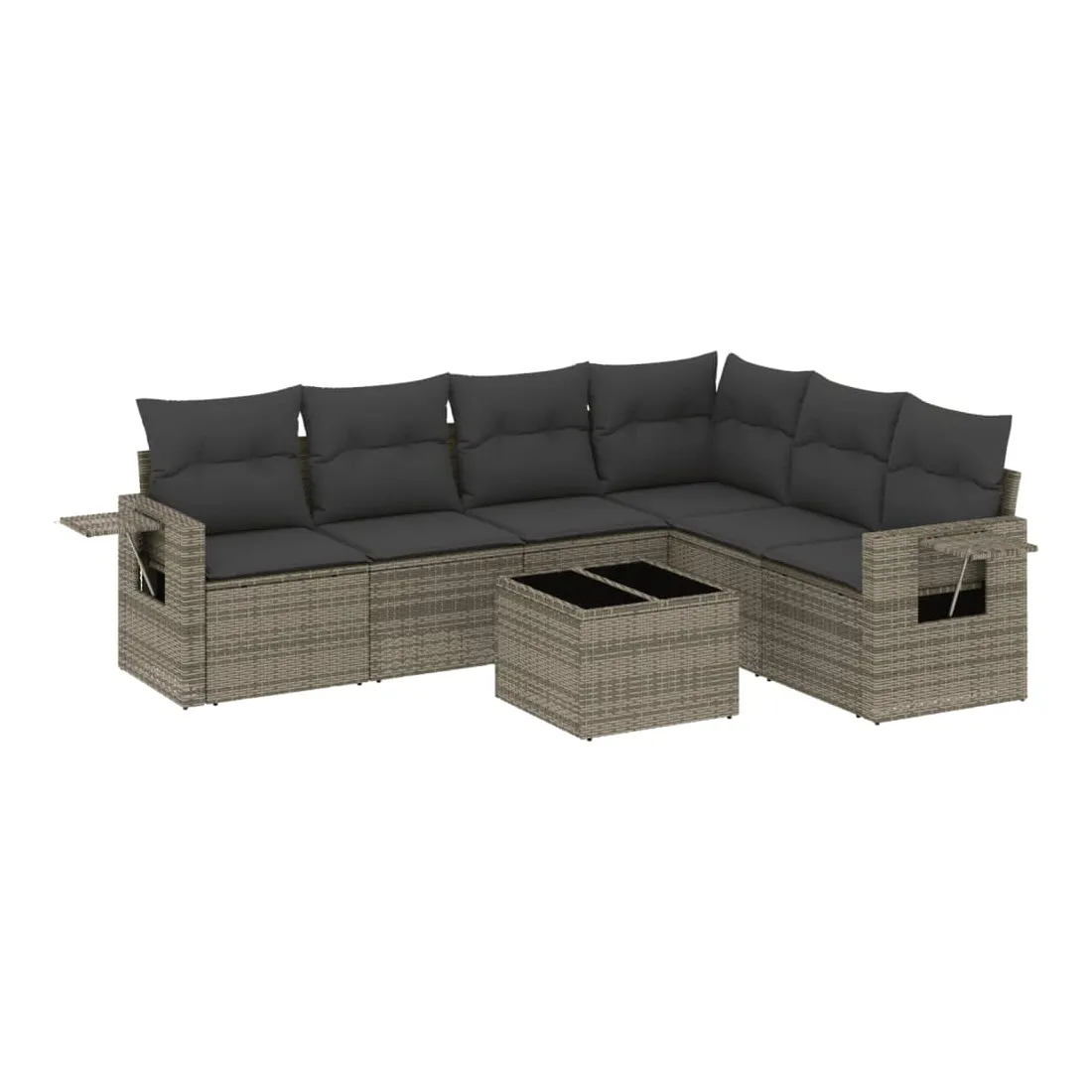 Salon de jardin avec coussins 7 pcs gris résine tressée