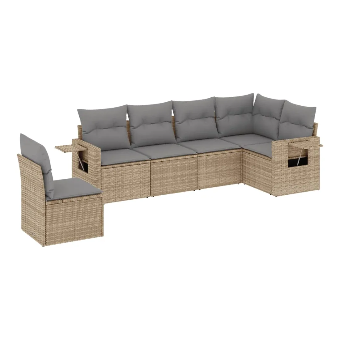 Salon de jardin avec coussins 6 pcs beige résine tressée
