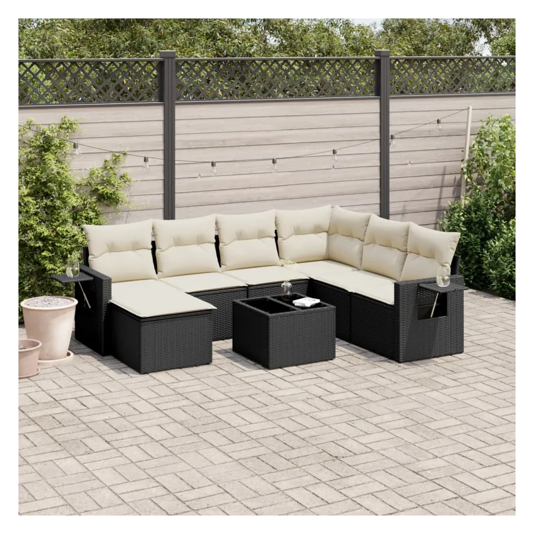 Cet ensemble de canapés de jardin est le complément parfait de votre arrière-cour, terrasse ou patio, offrant un espace confortable et accueillant pour discuter avec la famille et les amis ou simplement se détendre et profiter de l'extérieur. Matériau durable : la résine tressée, également connue sous le nom de poly rotin, est un matériau synthétique solide et nécessitant peu d'entretien qui ressemble au rotin naturel. Il est léger, facile à nettoyer et couramment utilisé pour les meubles d'extérieur en raison de sa durabilité et de ses propriétés de résistance aux intempéries.Fonction de rangement avec sac résistant à l'eau : le mobilier de jardin dispose d'un espace de rangement sous l'assise, complété par un sac résistant à l'eau pour ranger coussins, jouets et autres objets. Le sac intérieur peut être solidement fixé au mobilier d'extérieur grâce à des attaches auto-agrippantes pour plus de stabilité.Table d'appoint pratique : ce mobilier d'extérieur comprend une table d'appoint pliable avec un ressort à gaz sur les accoudoirs, offrant un endroit pratique pour garder vos essentiels à portée de main.Housse amovible et lavable : ces coussins de siège sont dotés de housses amovibles pour un lavage et un entretien faciles.Conception modulaire : cet ensemble de meubles d'extérieur a une conception modulaire, ce qui le rend complètement flexible et facile à déplacer, afin que vous puissiez créer un agencement de meubles d'extérieur personnalisé. Bon à savoir :Pour que vos meubles d'extérieur restent beaux, nous vous recommandons de les protéger avec une housse imperméable.