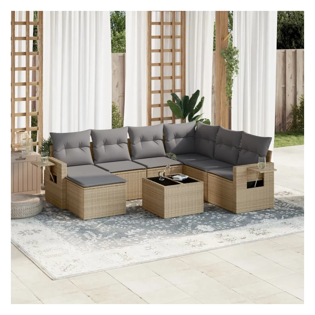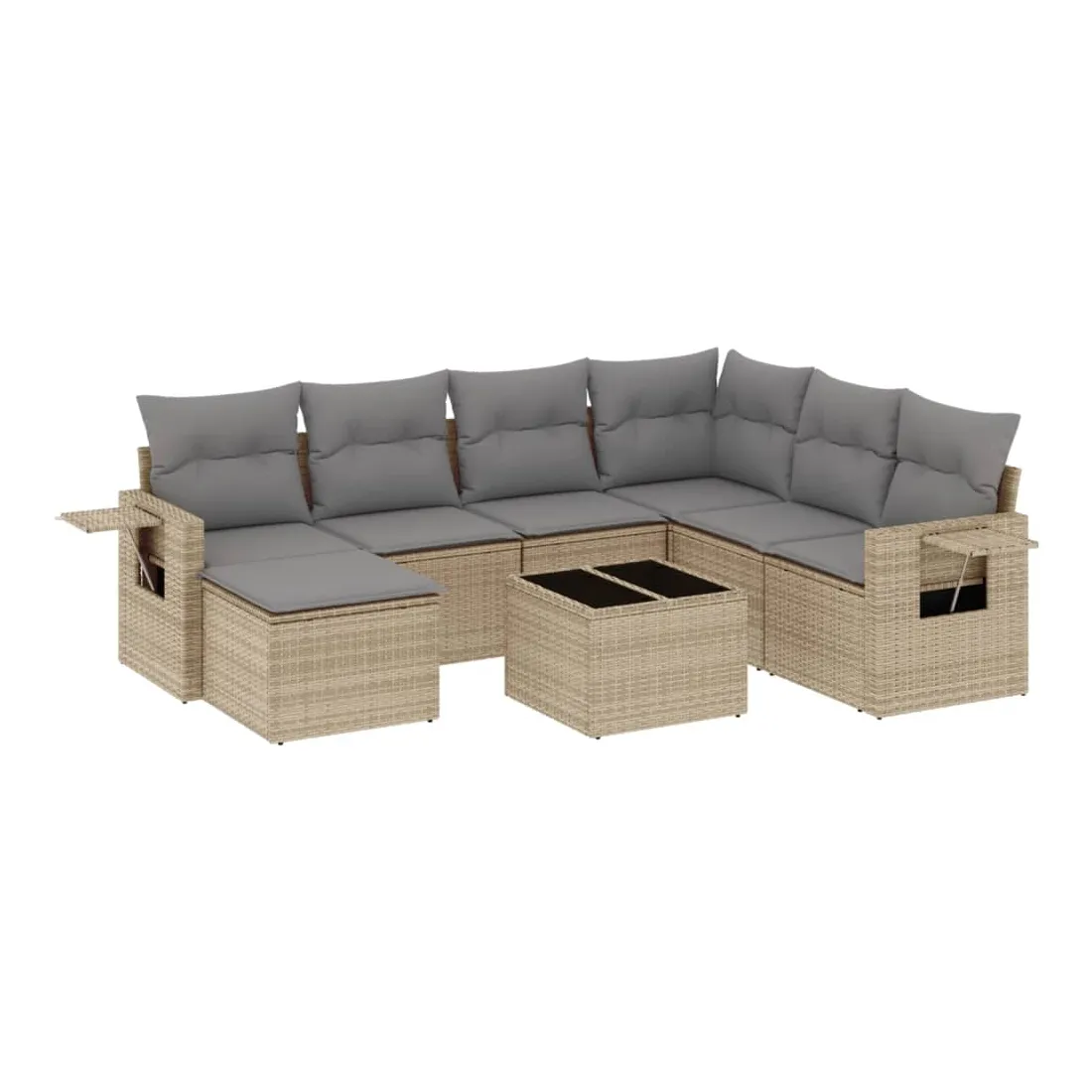 Salon de jardin avec coussins 8 pcs beige résine tressée