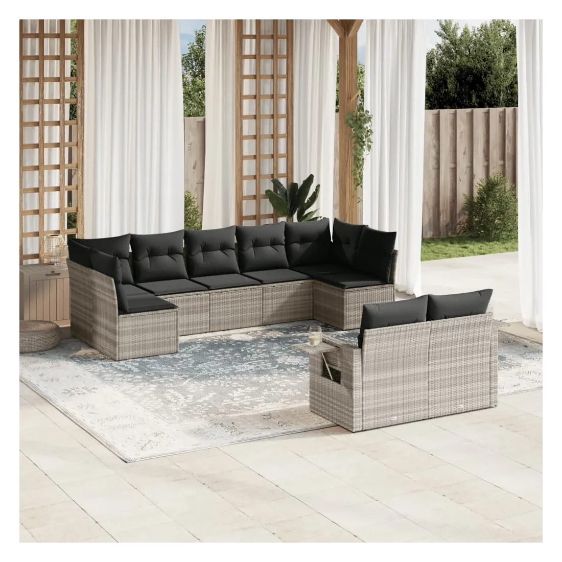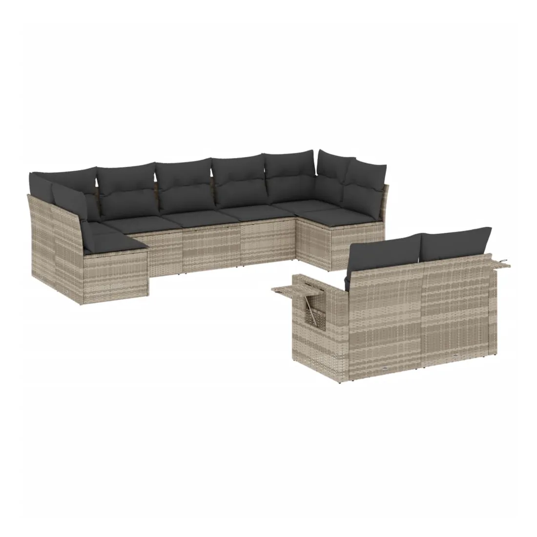 Salon de jardin 9 pcs avec coussins gris clair résine tressée