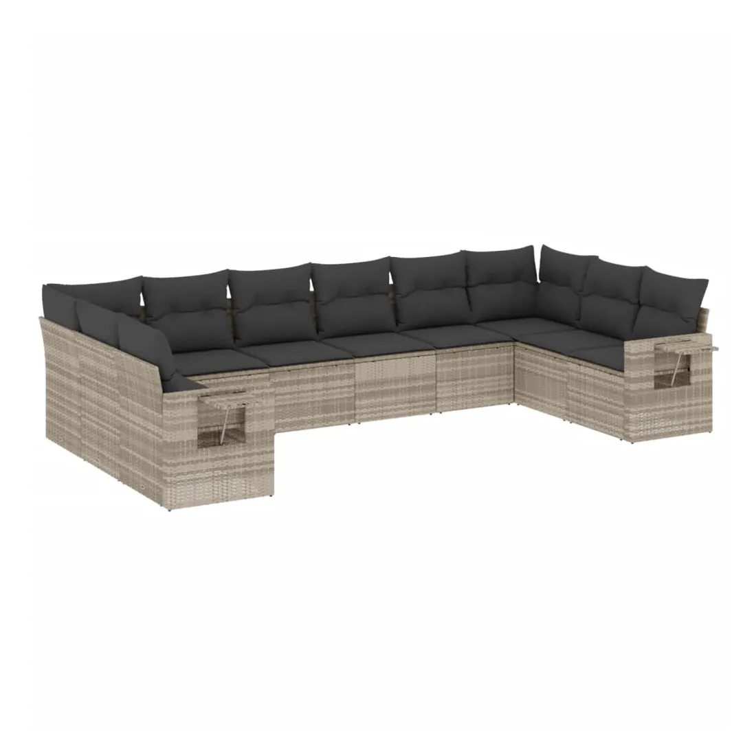 Salon de jardin avec coussins 10 pcs gris clair résine tressée