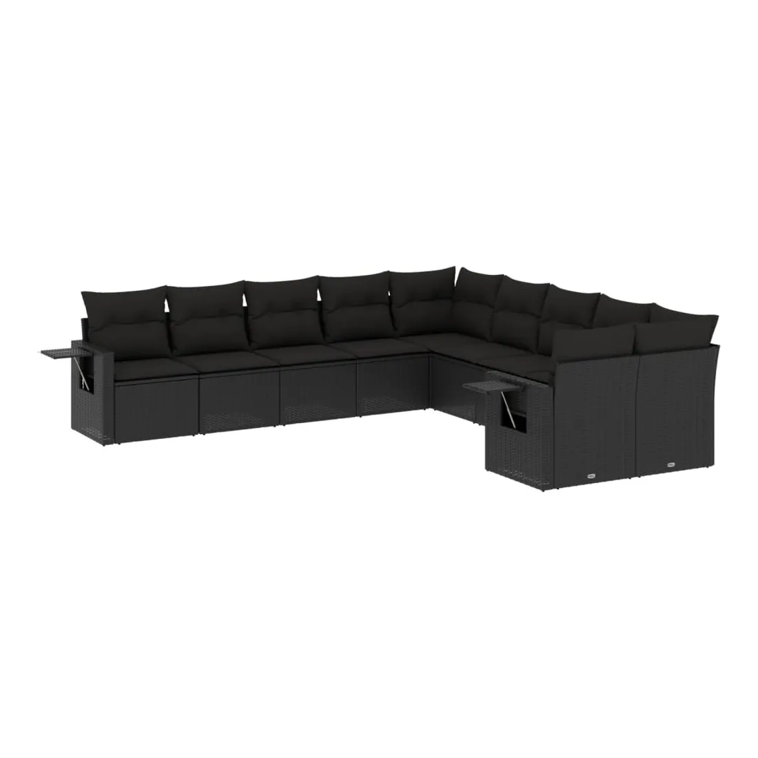Salon de jardin 10 pcs avec coussins noir résine tressée