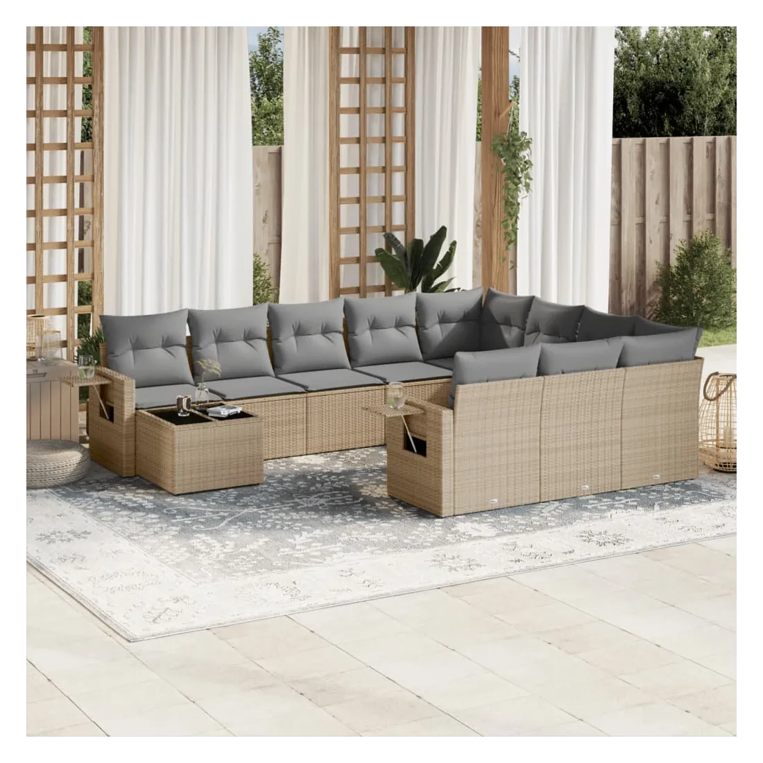 Salon de jardin 11 pcs avec coussins beige résine tressée