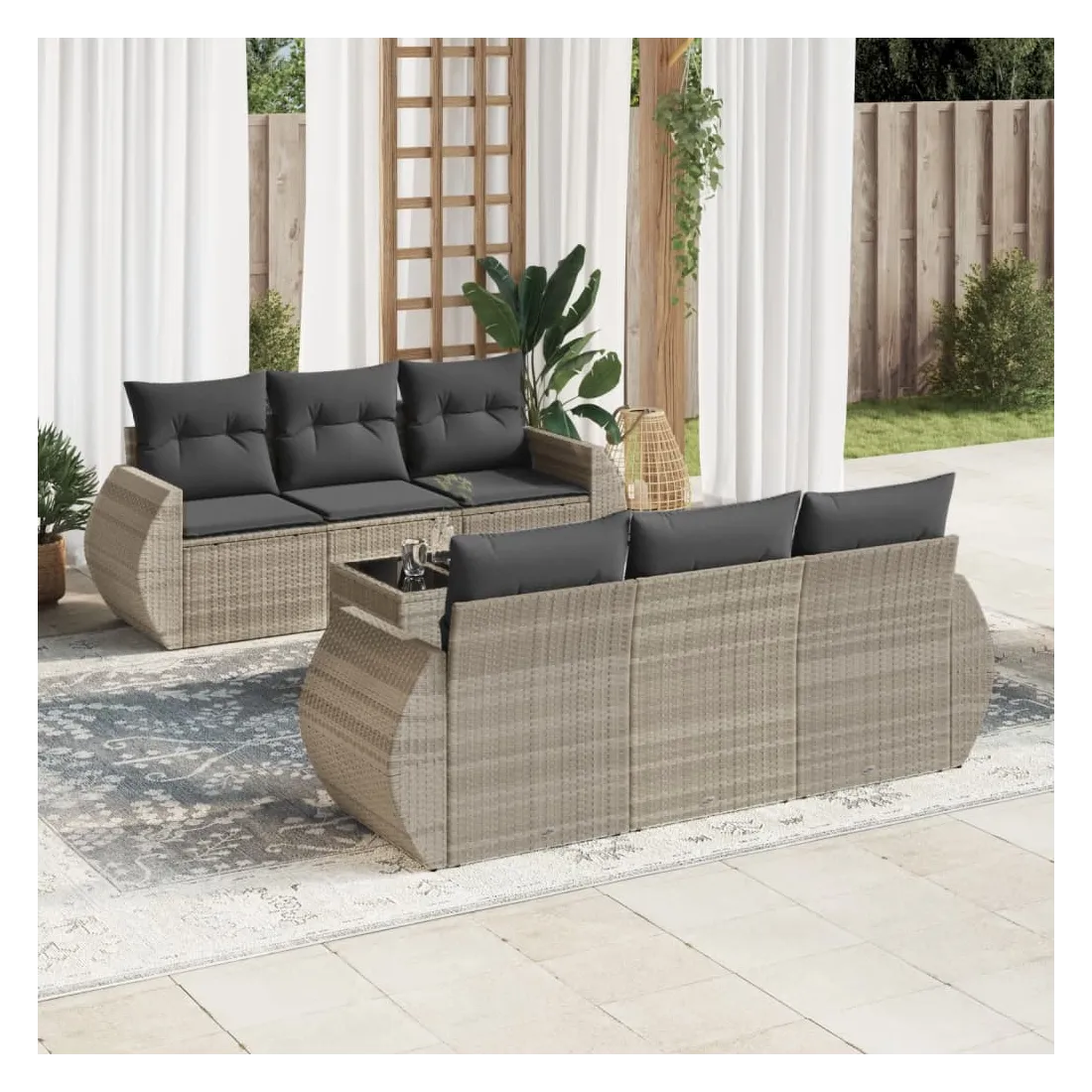 Cet ensemble de canapés de jardin est le complément parfait de votre arrière-cour, terrasse ou patio, offrant un espace confortable et accueillant pour discuter avec la famille et les amis ou simplement se détendre et profiter de l'extérieur. Matériau durable : la résine tressée, également connue sous le nom de poly rotin, est un matériau synthétique solide et nécessitant peu d'entretien qui ressemble au rotin naturel. Il est léger, facile à nettoyer et couramment utilisé pour les meubles d'extérieur en raison de sa durabilité et de ses propriétés de résistance aux intempéries.Fonction de rangement avec sac résistant à l'eau : chaque siège de jardin dispose d'un espace de rangement sous l'assise, complété par un sac résistant à l'eau pour ranger les coussins, les jouets et d'autres objets. Les sacs intérieurs sont dotés d'un couvercle et peuvent être solidement fixés aux sièges à l'aide de bandes auto-agrippantes pour plus de stabilité.Dessus en verre : le dessus de la table d'extérieur est fabriqué en verre trempé solide et durable, ce qui le rend facile à nettoyer avec un chiffon humide et ajoute une touche d'élégance à votre espace extérieur.Housse amovible et lavable : ces coussins de siège sont dotés de housses amovibles pour un lavage et un entretien faciles.Conception modulaire : cet ensemble de meubles d'extérieur a une conception modulaire, ce qui le rend complètement flexible et facile à déplacer, afin que vous puissiez créer un agencement de meubles d'extérieur personnalisé. Bon à savoir :Pour que vos meubles d'extérieur restent beaux, nous vous recommandons de les protéger avec une housse imperméable.