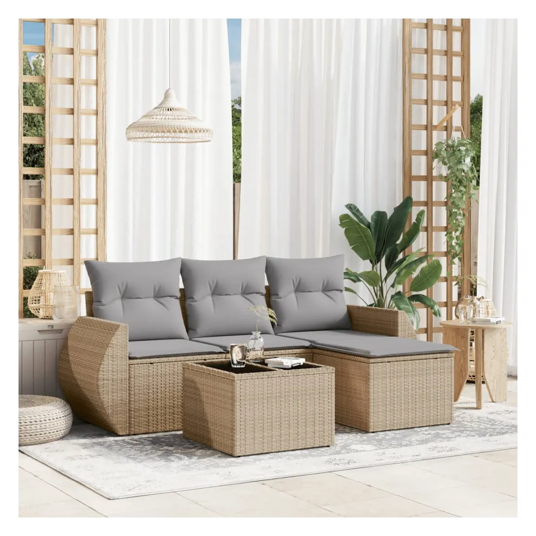 Cet ensemble de canapés de jardin est le complément parfait de votre arrière-cour, terrasse ou patio, offrant un espace confortable et accueillant pour discuter avec la famille et les amis ou simplement se détendre et profiter de l'extérieur. Matériau durable : la résine tressée, également connue sous le nom de poly rotin, est un matériau synthétique solide et nécessitant peu d'entretien qui ressemble au rotin naturel. Il est léger, facile à nettoyer et couramment utilisé pour les meubles d'extérieur en raison de sa durabilité et de ses propriétés de résistance aux intempéries.Fonction de rangement avec sac résistant à l'eau : chaque siège de jardin dispose d'un espace de rangement sous l'assise, complété par un sac résistant à l'eau pour ranger les coussins, les jouets et d'autres objets. Les sacs intérieurs sont dotés d'un couvercle et peuvent être solidement fixés aux sièges à l'aide de bandes auto-agrippantes pour plus de stabilité.Dessus en verre : le dessus de la table d'extérieur est fabriqué en verre trempé solide et durable, ce qui le rend facile à nettoyer avec un chiffon humide et ajoute une touche d'élégance à votre espace extérieur.Housse amovible et lavable : ces coussins de siège sont dotés de housses amovibles pour un lavage et un entretien faciles.Conception modulaire : cet ensemble de meubles d'extérieur a une conception modulaire, ce qui le rend complètement flexible et facile à déplacer, afin que vous puissiez créer un agencement de meubles d'extérieur personnalisé. Bon à savoir :Pour que vos meubles d'extérieur restent beaux, nous vous recommandons de les protéger avec une housse imperméable.