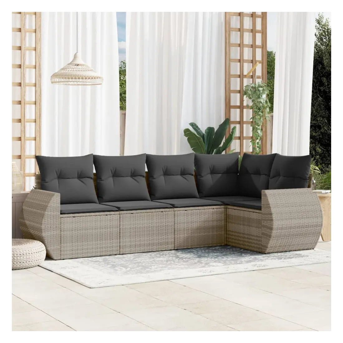 Cet ensemble de canapés de jardin est le complément parfait de votre arrière-cour, terrasse ou patio, offrant un espace confortable et accueillant pour discuter avec la famille et les amis ou simplement se détendre et profiter de l'extérieur. Matériau durable : la résine tressée, également connue sous le nom de poly rotin, est un matériau synthétique solide et nécessitant peu d'entretien qui ressemble au rotin naturel. Il est léger, facile à nettoyer et couramment utilisé pour les meubles d'extérieur en raison de sa durabilité et de ses propriétés de résistance aux intempéries.Fonction de rangement avec sac résistant à l'eau : chaque siège de jardin dispose d'un espace de rangement sous l'assise, complété par un sac résistant à l'eau pour ranger les coussins, les jouets et d'autres objets. Les sacs intérieurs sont dotés d'un couvercle et peuvent être solidement fixés aux sièges à l'aide de bandes auto-agrippantes pour plus de stabilité.Housse amovible et lavable : ces coussins de siège sont dotés de housses amovibles pour un lavage et un entretien faciles.Conception modulaire : cet ensemble de meubles d'extérieur a une conception modulaire, ce qui le rend complètement flexible et facile à déplacer, afin que vous puissiez créer un agencement de meubles d'extérieur personnalisé. Bon à savoir :Pour que vos meubles d'extérieur restent beaux, nous vous recommandons de les protéger avec une housse imperméable.