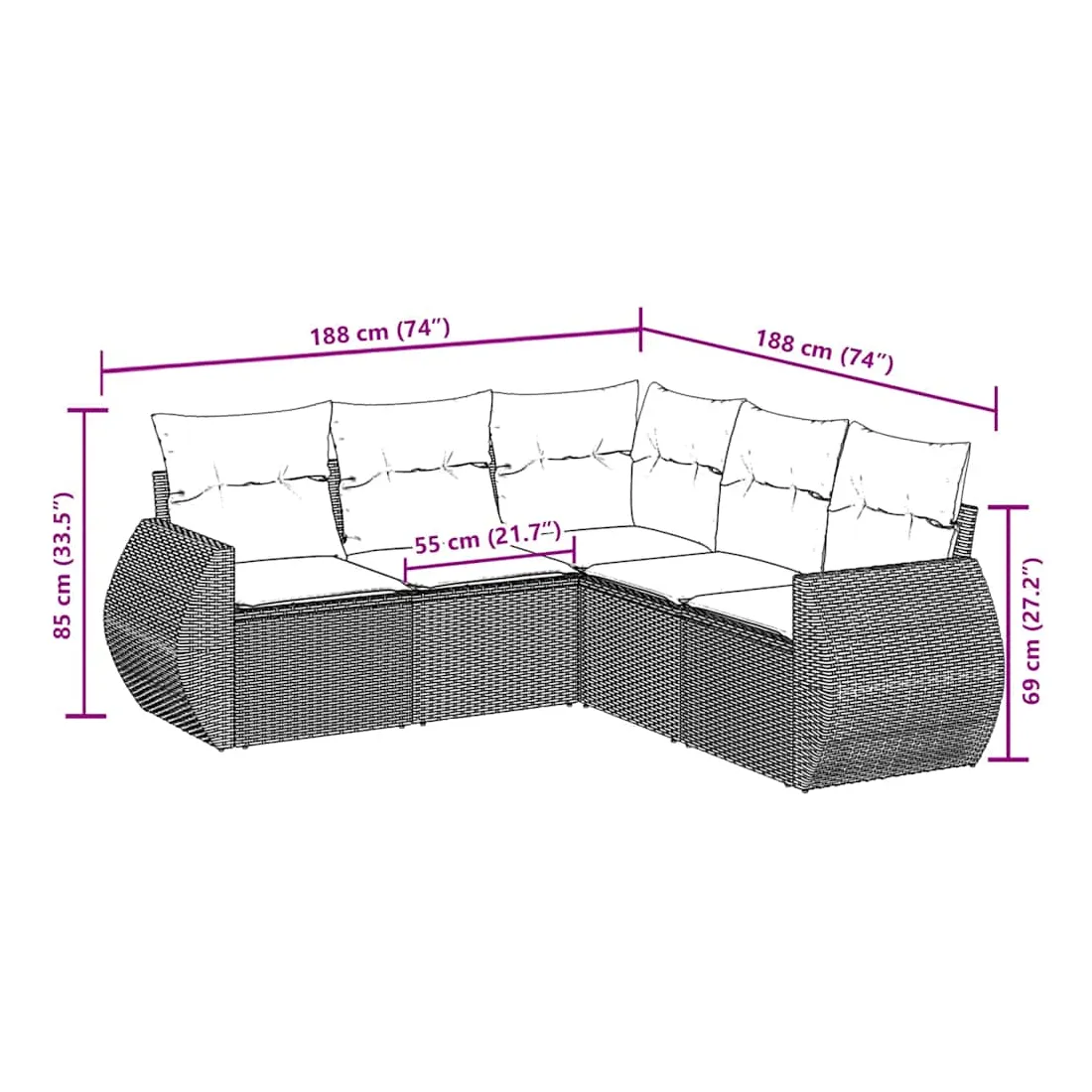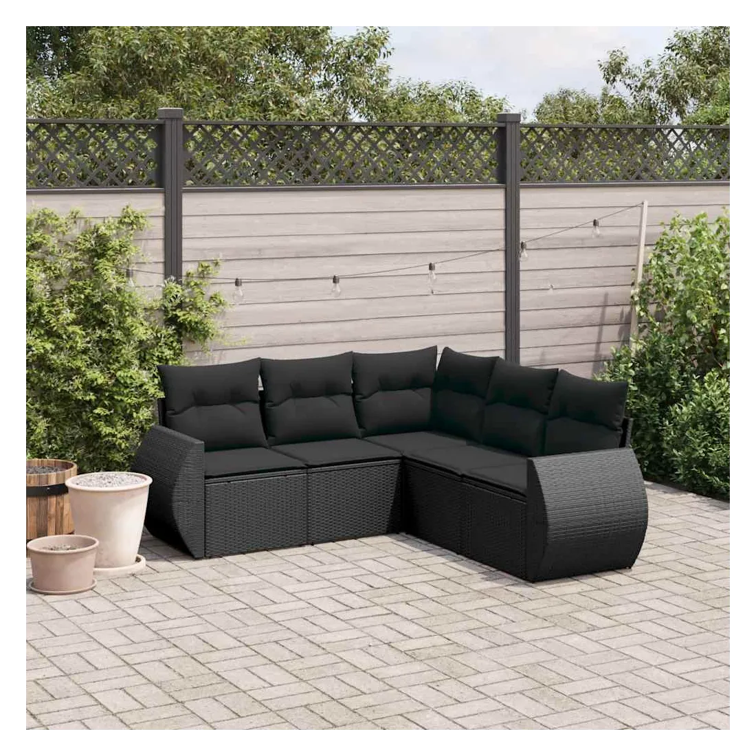 Cet ensemble de canapés de jardin est le complément parfait de votre arrière-cour, terrasse ou patio, offrant un espace confortable et accueillant pour discuter avec la famille et les amis ou simplement se détendre et profiter de l'extérieur. Matériau durable : la résine tressée, également connue sous le nom de poly rotin, est un matériau synthétique solide et nécessitant peu d'entretien qui ressemble au rotin naturel. Il est léger, facile à nettoyer et couramment utilisé pour les meubles d'extérieur en raison de sa durabilité et de ses propriétés de résistance aux intempéries.Fonction de rangement avec sac résistant à l'eau : chaque siège de jardin dispose d'un espace de rangement sous l'assise, complété par un sac résistant à l'eau pour ranger les coussins, les jouets et d'autres objets. Les sacs intérieurs sont dotés d'un couvercle et peuvent être solidement fixés aux sièges à l'aide de bandes auto-agrippantes pour plus de stabilité.Housse amovible et lavable : ces coussins de siège sont dotés de housses amovibles pour un lavage et un entretien faciles.Conception modulaire : cet ensemble de meubles d'extérieur a une conception modulaire, ce qui le rend complètement flexible et facile à déplacer, afin que vous puissiez créer un agencement de meubles d'extérieur personnalisé. Bon à savoir :Pour que vos meubles d'extérieur restent beaux, nous vous recommandons de les protéger avec une housse imperméable.
