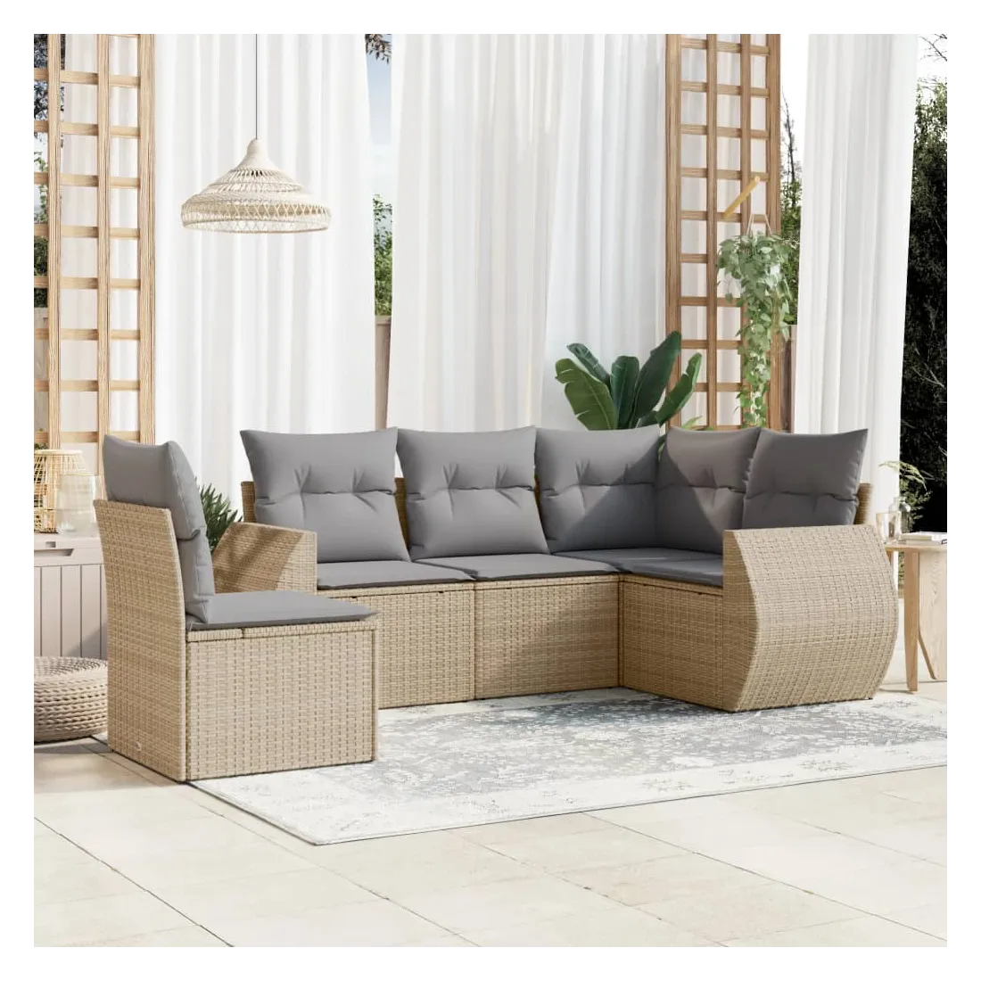 Cet ensemble de canapés de jardin est le complément parfait de votre arrière-cour, terrasse ou patio, offrant un espace confortable et accueillant pour discuter avec la famille et les amis ou simplement se détendre et profiter de l'extérieur. Matériau durable : la résine tressée, également connue sous le nom de poly rotin, est un matériau synthétique solide et nécessitant peu d'entretien qui ressemble au rotin naturel. Il est léger, facile à nettoyer et couramment utilisé pour les meubles d'extérieur en raison de sa durabilité et de ses propriétés de résistance aux intempéries.Fonction de rangement avec sac résistant à l'eau : chaque siège de jardin dispose d'un espace de rangement sous l'assise, complété par un sac résistant à l'eau pour ranger les coussins, les jouets et d'autres objets. Les sacs intérieurs sont dotés d'un couvercle et peuvent être solidement fixés aux sièges à l'aide de bandes auto-agrippantes pour plus de stabilité.Housse amovible et lavable : ces coussins de siège sont dotés de housses amovibles pour un lavage et un entretien faciles.Conception modulaire : cet ensemble de meubles d'extérieur a une conception modulaire, ce qui le rend complètement flexible et facile à déplacer, afin que vous puissiez créer un agencement de meubles d'extérieur personnalisé. Bon à savoir :Pour que vos meubles d'extérieur restent beaux, nous vous recommandons de les protéger avec une housse imperméable.