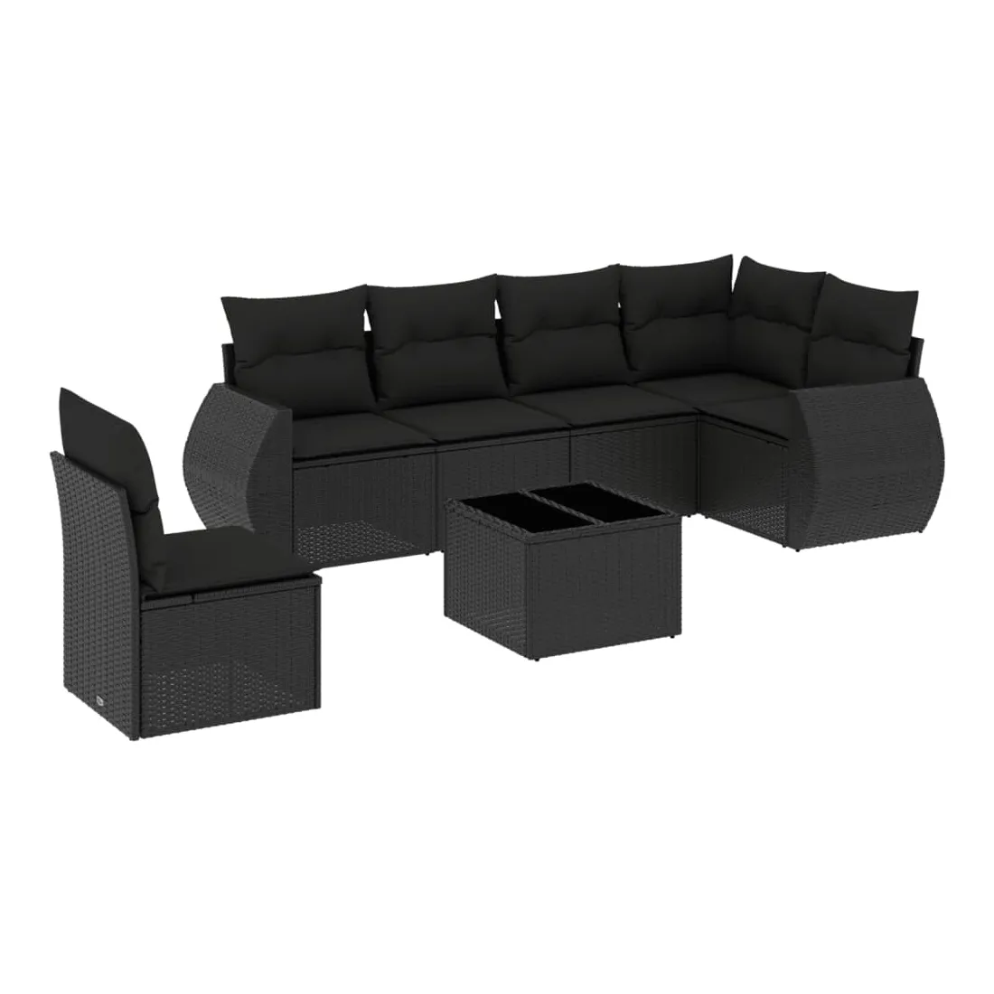Salon de jardin 7 pcs avec coussins noir résine tressée