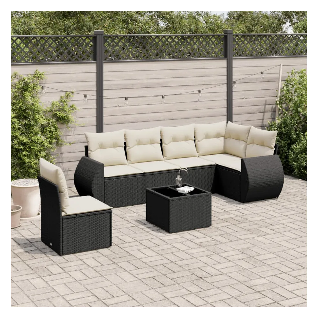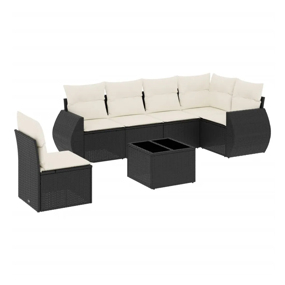Salon de jardin 7 pcs avec coussins noir résine tressée