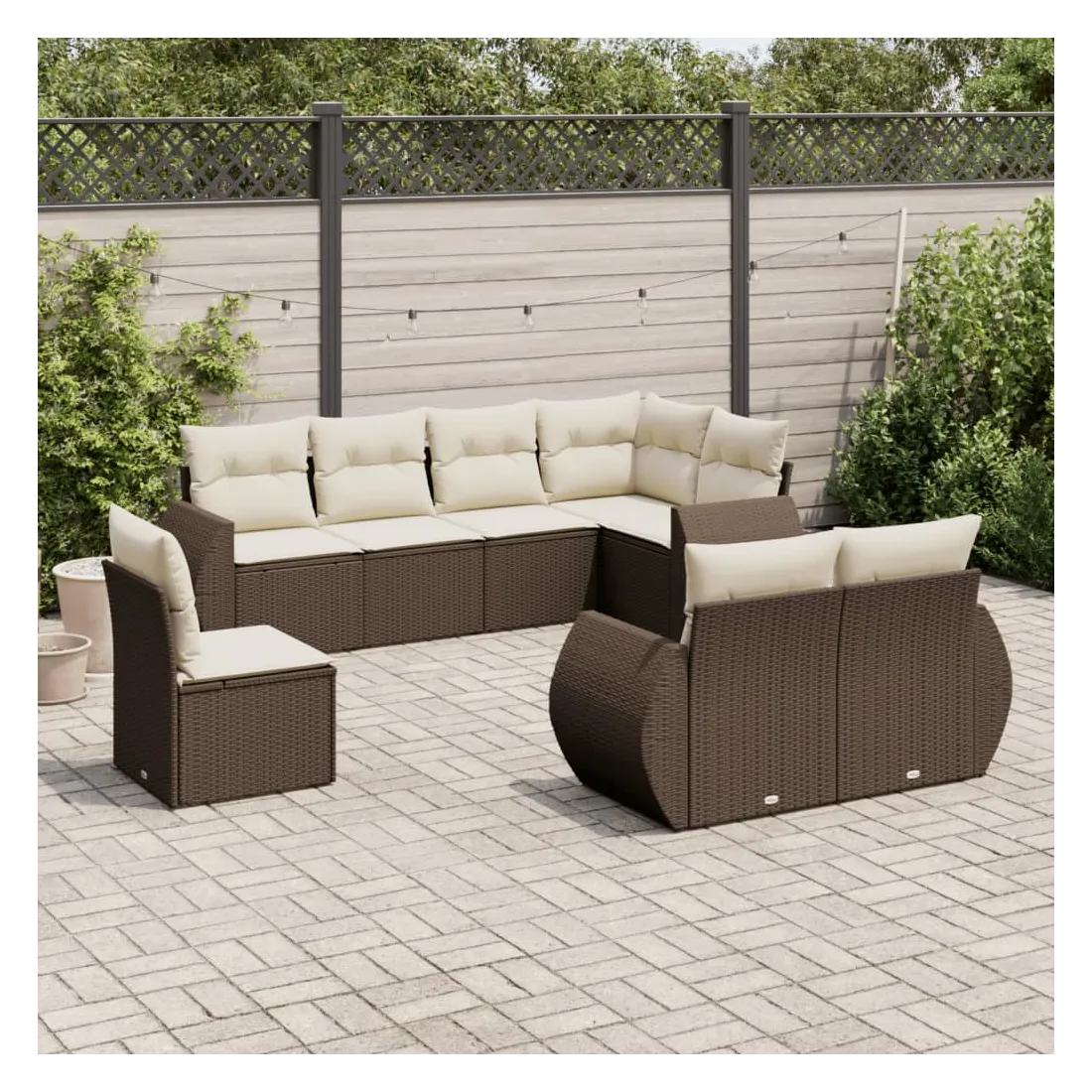 Salon de jardin 8 pcs avec coussins marron résine tressée
