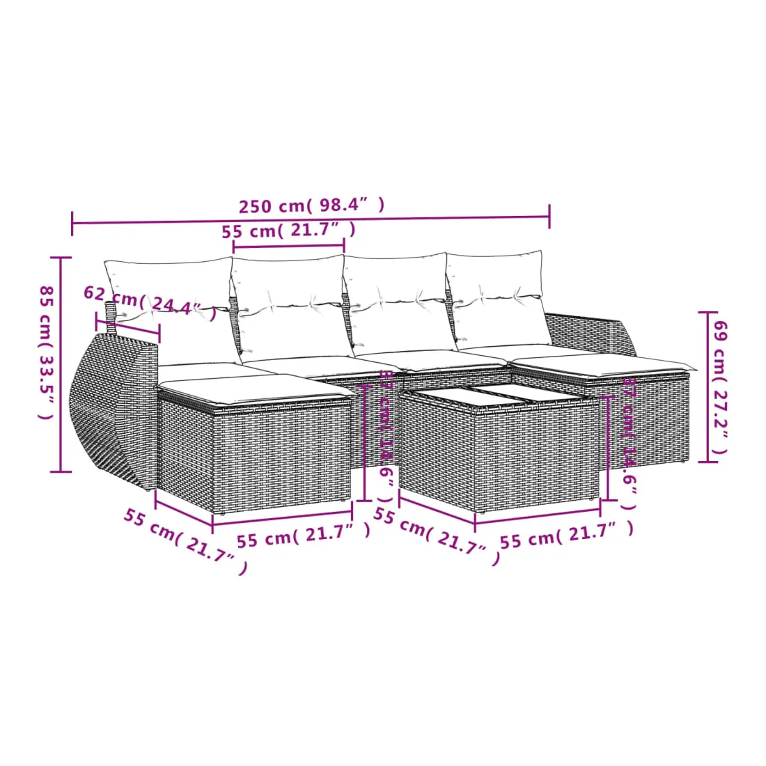 - Dimensions du coussin de siège : 55 x 55 x 3 cm (l x P x é)