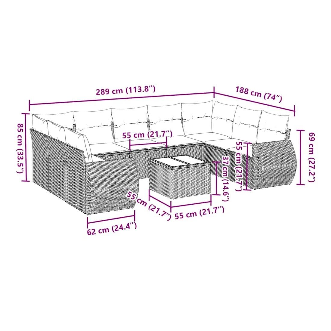 Salon de jardin avec coussins 10 pcs gris clair résine tressée